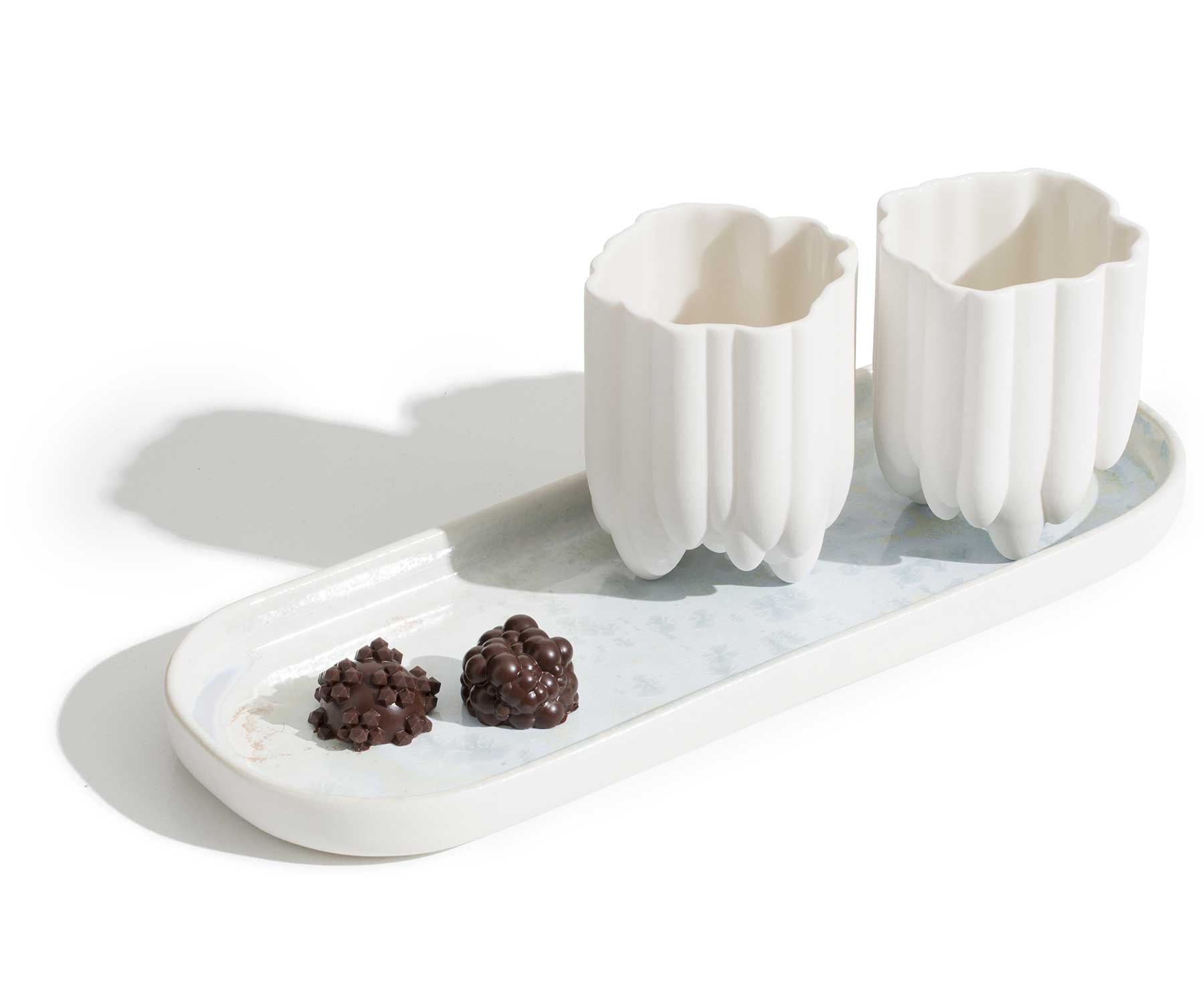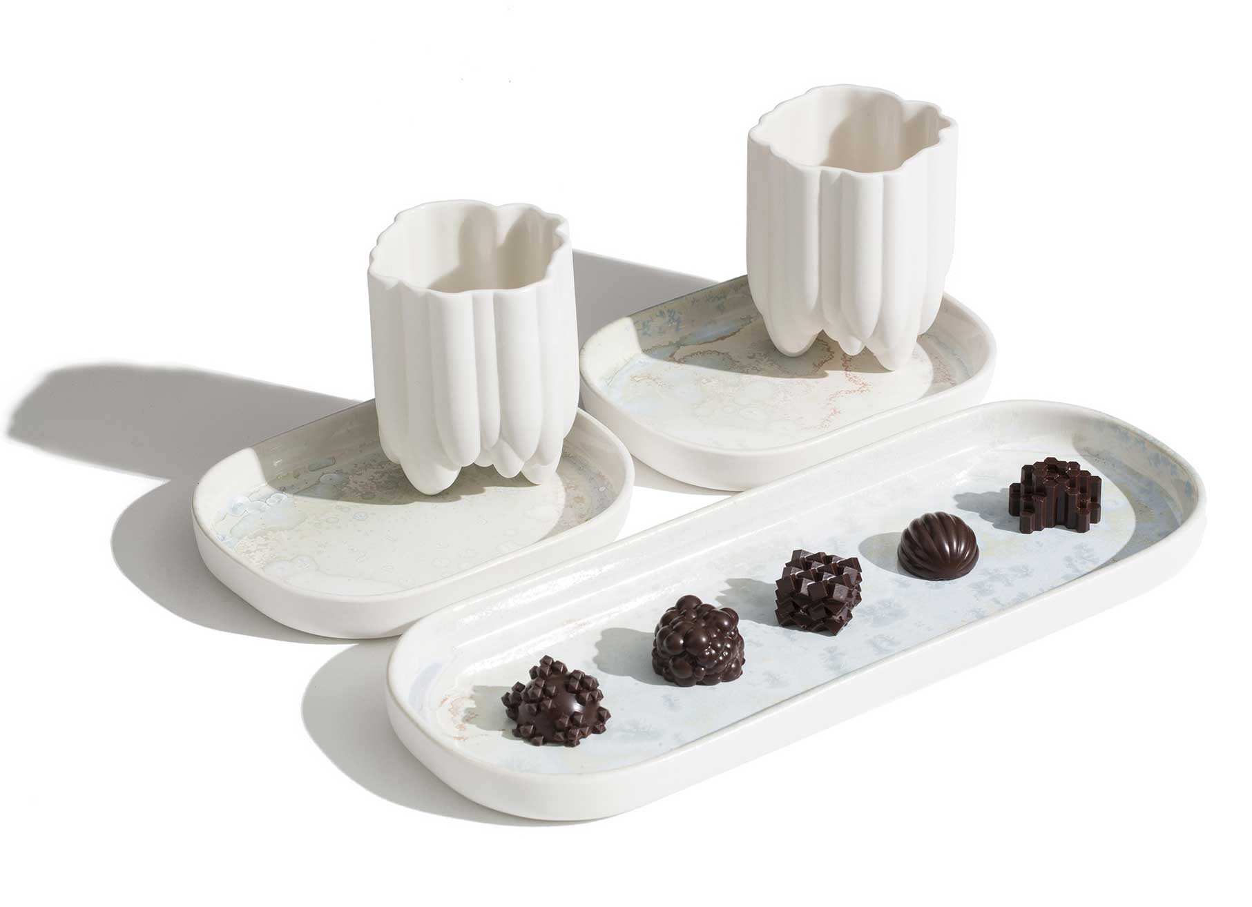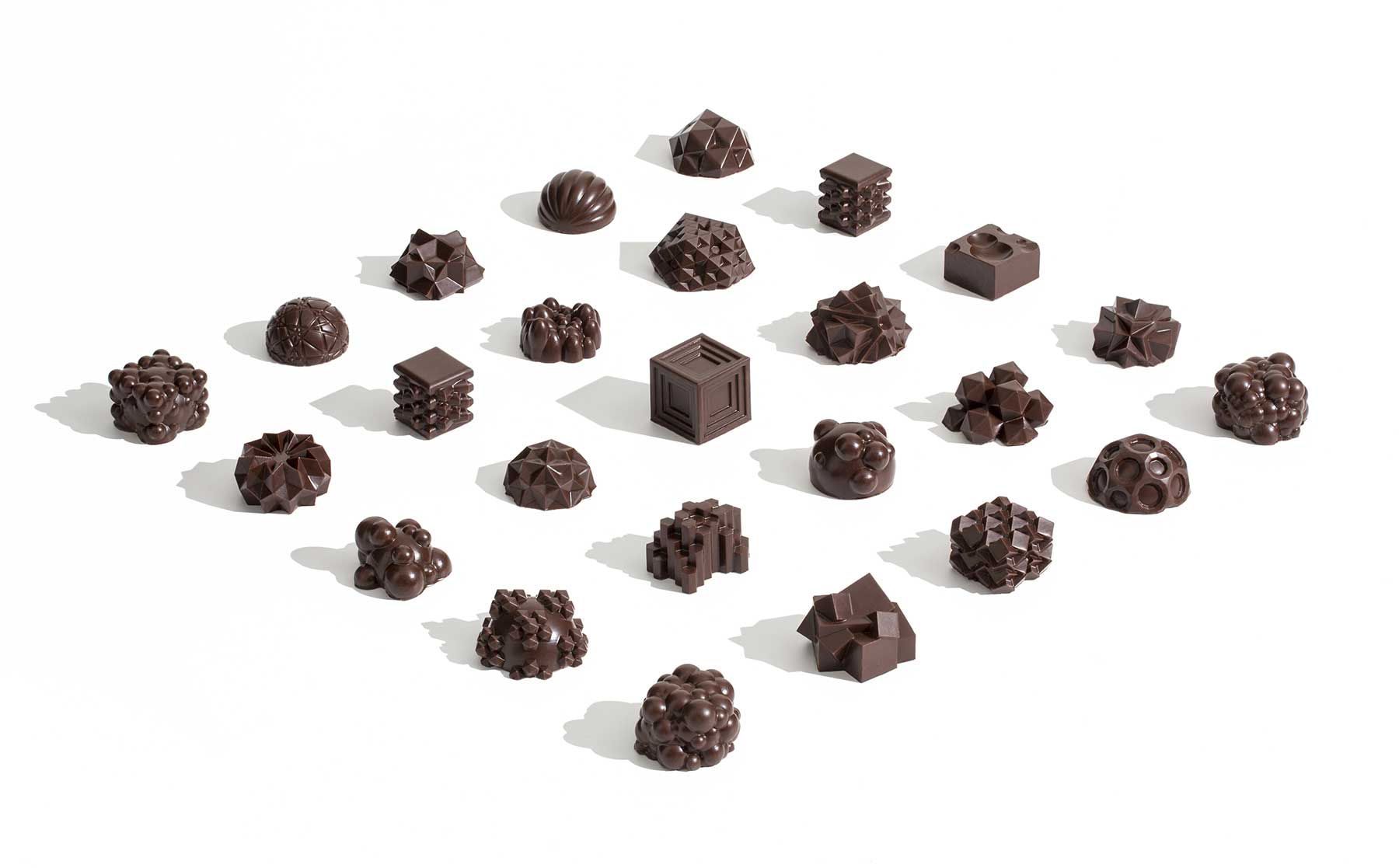 „This ambitious new project reinvents chocolates for the digital age, combining 3D-printing technologies and classic chocolatier techniques to create completely unique progressive chocolates. The complex digitally-formed chocolates are inspired by various sources from architecture, geological formations to natural minerals, and are filled with locally-inspired flavours, rarely found in chocolates, for example Australian native botanicals and local Hong Kong foods and desserts.“