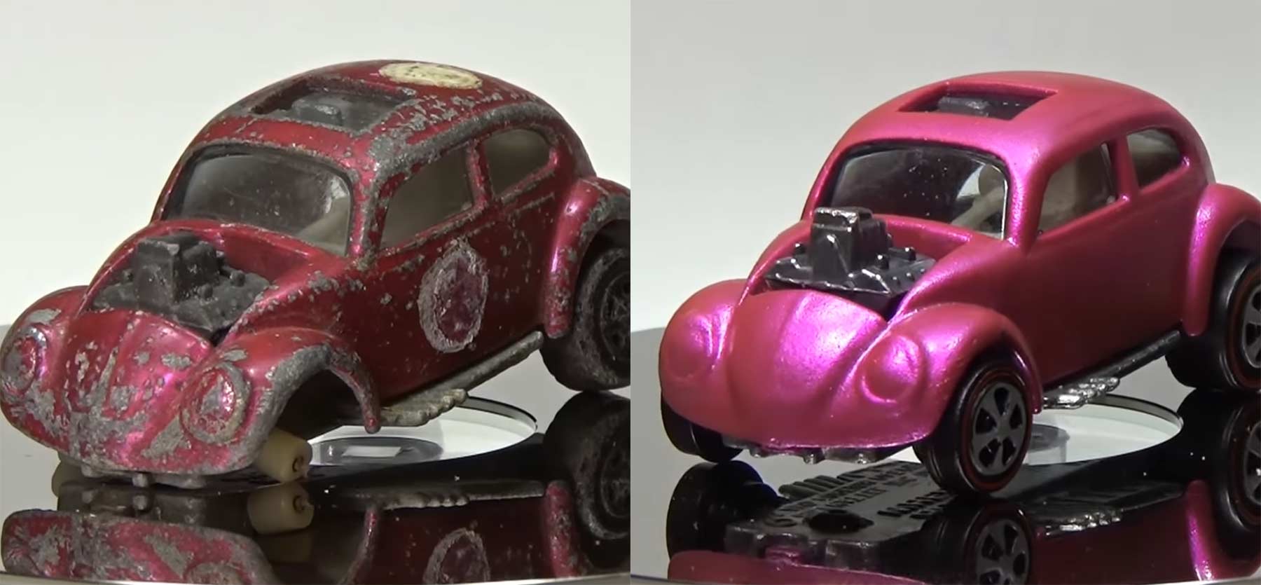 YouTuber baremetalHW restauriert alte Hot Wheels und haucht den Miniatur-Fahrzeugen so neues Leben ein. Auch wenn mir die Detail-Bemalungen auf den Karosserien fehlen, machen eine neue Bereifung und ein frischer Lack schon eine Menge aus.