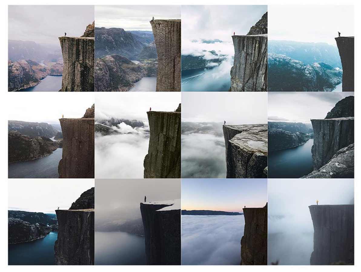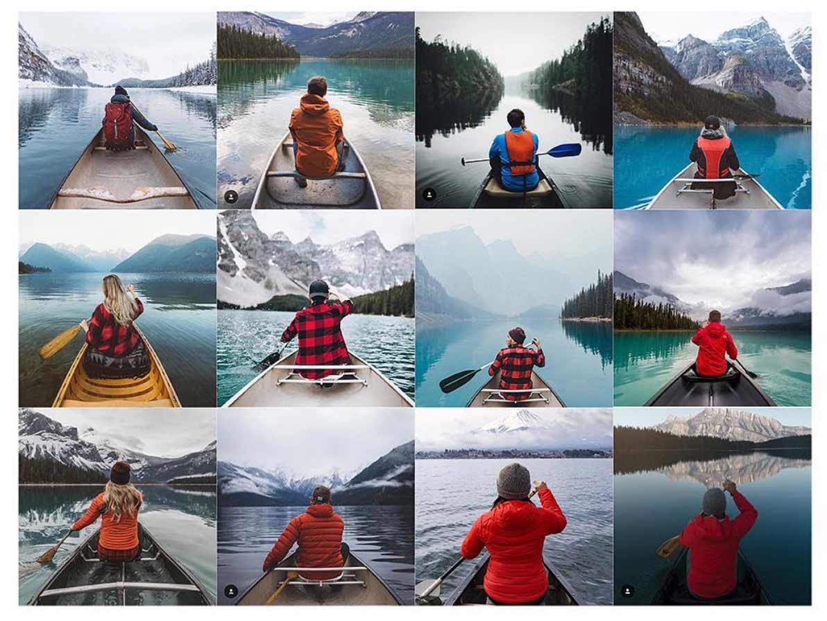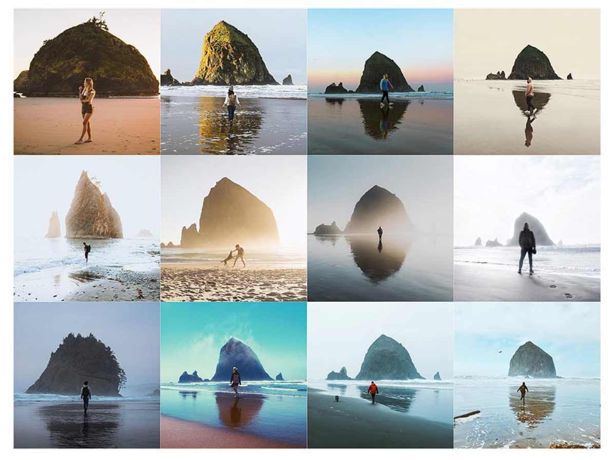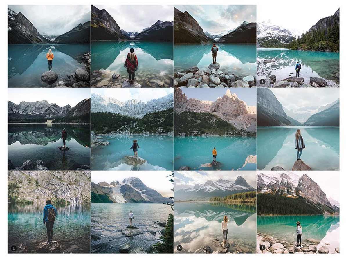 War Instagram einst die kreative Spielweise für Fotografiebegeisterte und vor allem das Füllhorn an amateurhaften „so lief mein Tag“-Schnapschüssen, hat sich zumindest in der Riege derer, die viele Follower haben (möchten) eine gewisse Professionalisierung ergeben, die zu einer Standardisierung geführt zu haben scheint. Das ist ja irgendwie auch klar, „inspiriert“ sich alles gegenseitig und am Ende ist die schönste Art eines Fotos eben die schönste Art, die jede/r anstrebt. Da kann sich schon einmal vieles gleichen. Der Instagram-Account @insta_repeat hat als Lösung, um originell zu bleiben, den Tritt auf die Meta-Ebene gewagt und sammelt ähnlich bis gleich aussehende Motive, die auf dem sozialen Netzwerk gepostet wurden. Ob „Mensch vor See“, „Autospiegelreflexion“ oder „Foto von Smartphone-Kamera-Screen“ – das habt ihr bestimmt alles schon mal gesehen oder gar selbst eines der Motive geschossen, oder?!