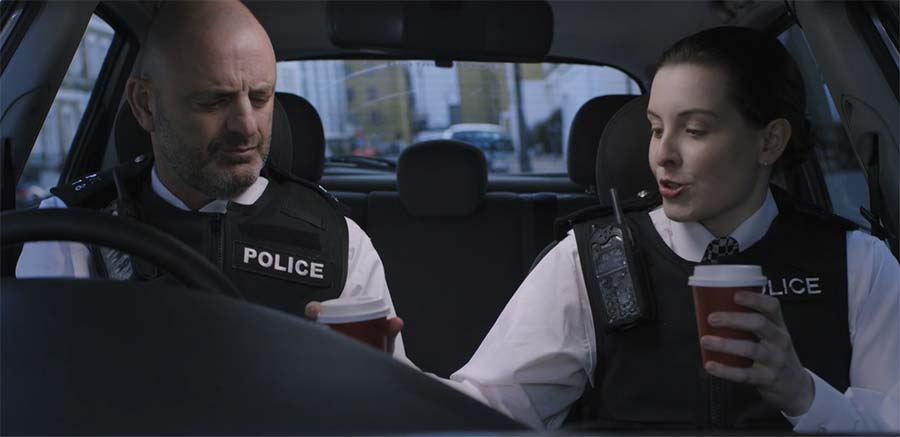 Mir gefällt dir Inszenierung dieses Kurzfilms von Charlotte Regan ungemein gut. Die komplette Dauer über sehen wir „Standby“ aus der gleichen Perspektive. Stets als Betrachter vom Amaturenbrett eines Streifenwagens. Quasi auf standby. Und nach und nach werden aus neuen Polizei-Kollegen Partner und es entwickelt sich eine emotionale Geschichte.