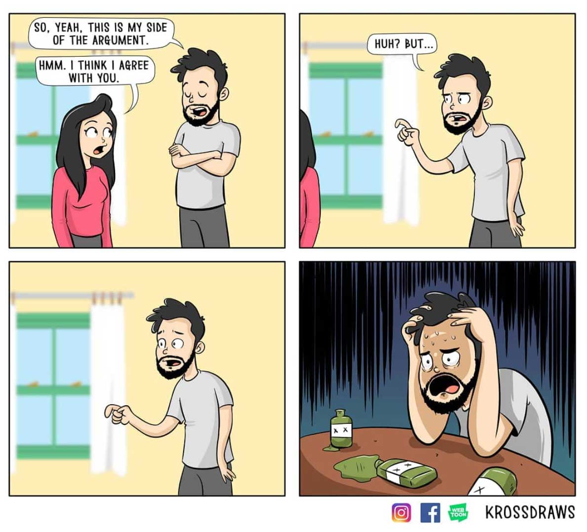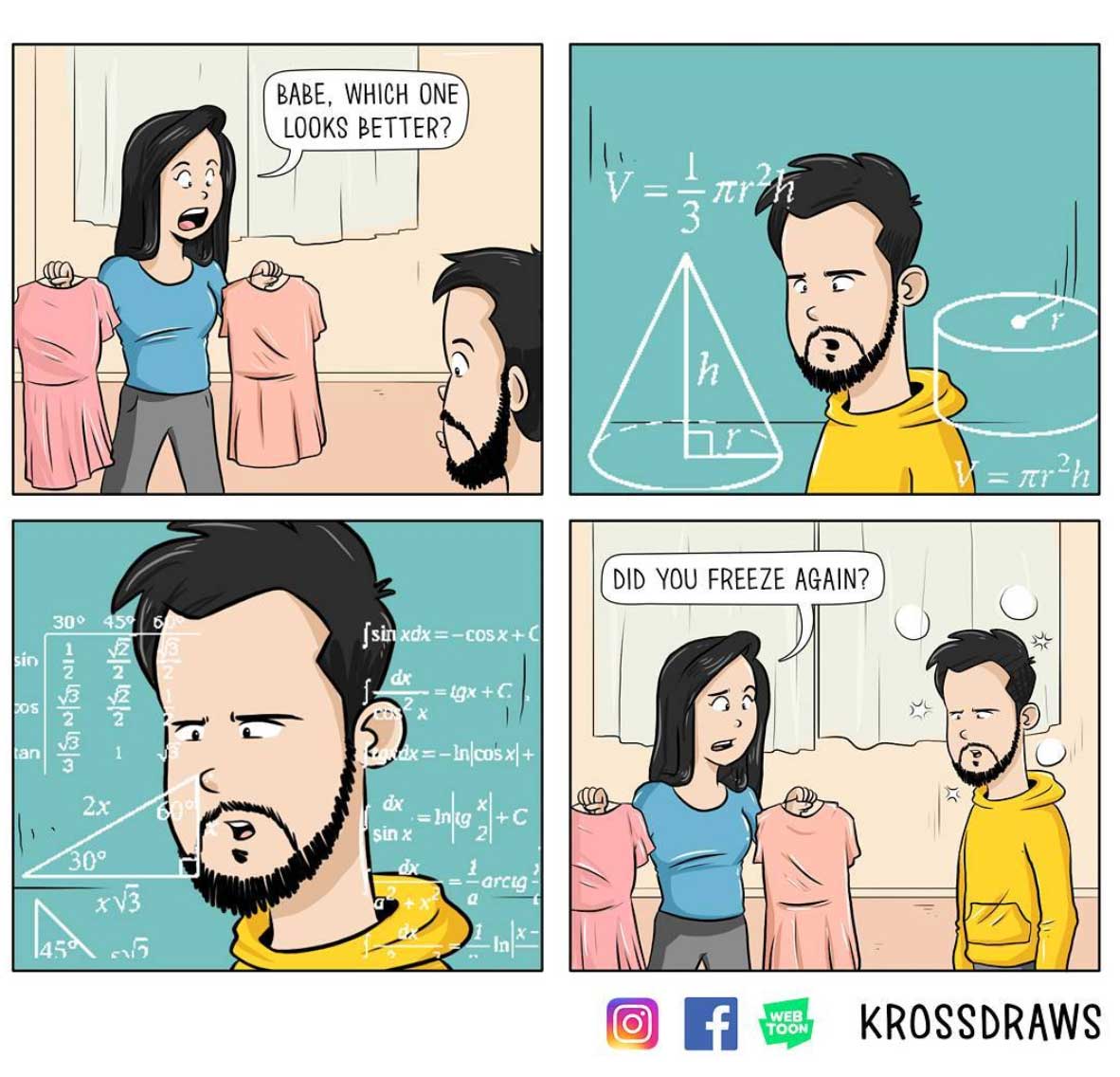 Viele weiterer dieser charmanten Alltagserzählungen gibt es auf dem Instagram-Profil @krossdraws zu sehen.