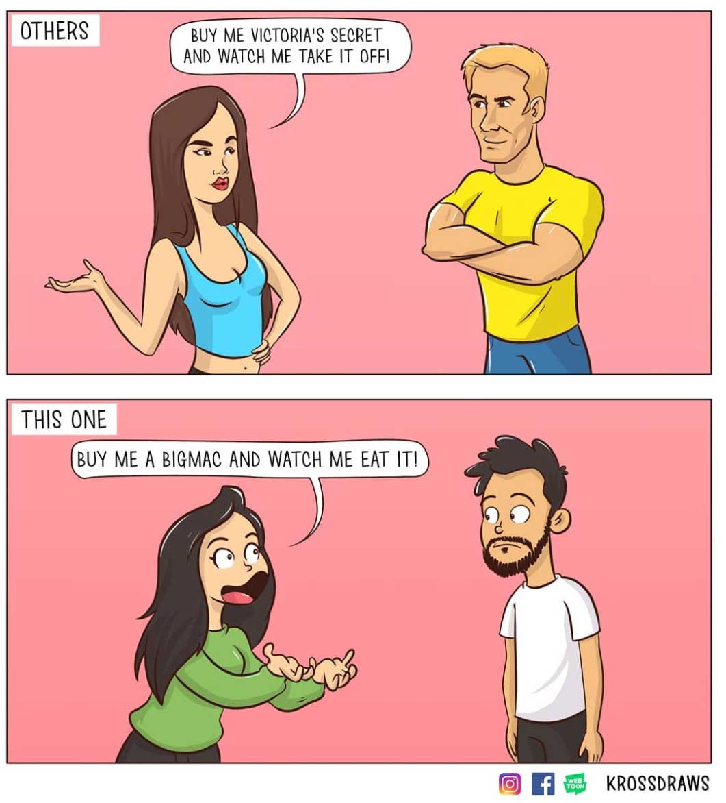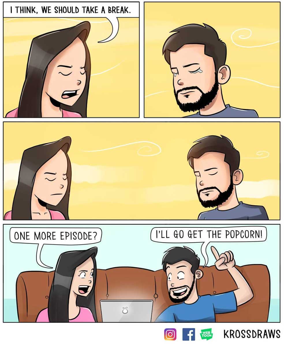 Karan Gupta aus New Delhi durchlebt viele Beziehungsmomente, die der Großteil von uns in dieser oder ähnlicher Art auch kennen dürfte. Nur hält er sie entgegen der meisten von uns in kleinen Webcomics fest. Dabei schafft er es nicht selten, die eher normalen Alltagsdinge mit originellen Kniffs und vor allem Humor in die Panels zu verpacken. Hier einige meiner persönlichen Highlights: