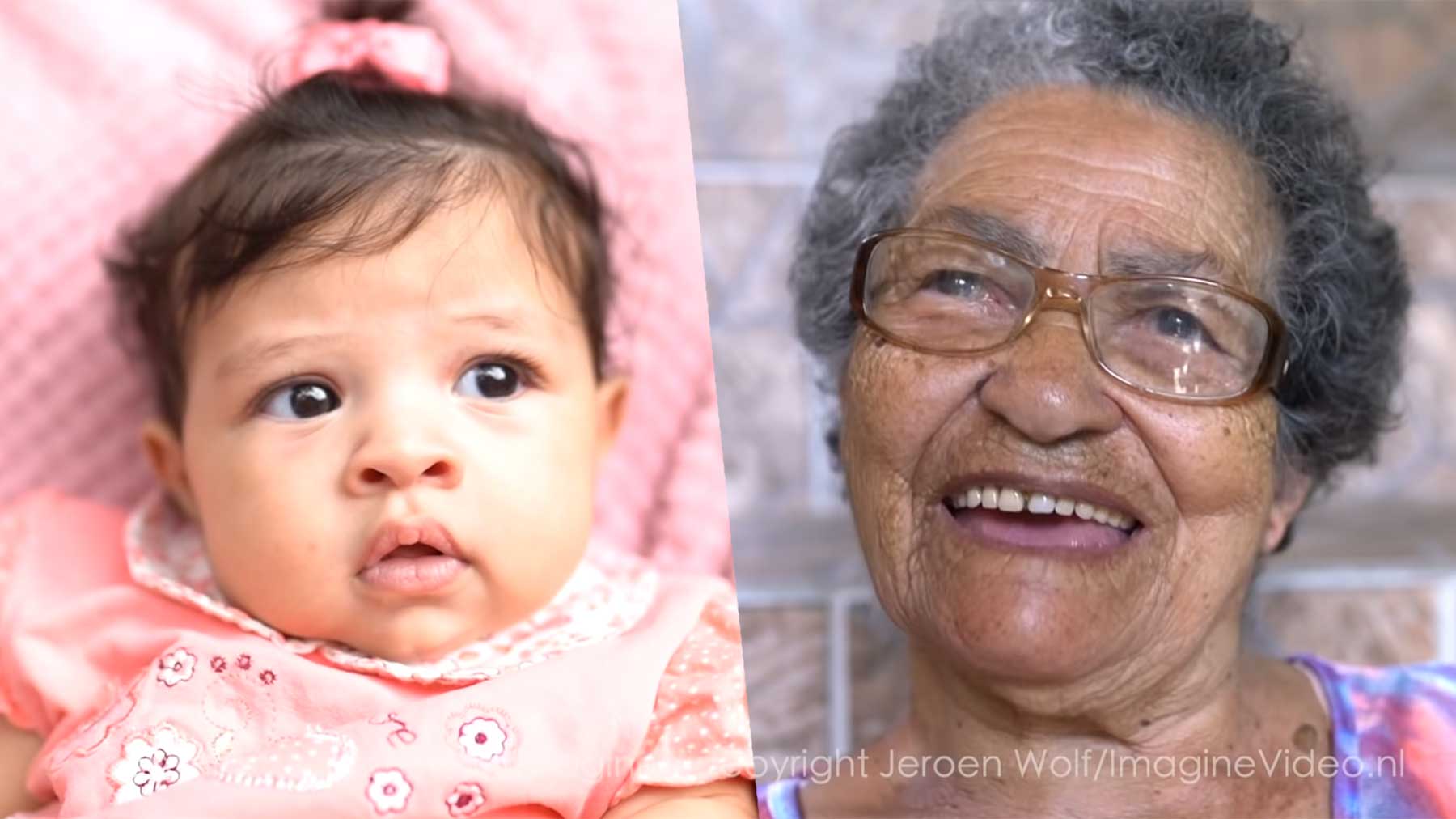 „From baby to 100 year-old in Brazil (Portugese language). This video shows the lifespan of a human being through the eyes of 100 people saying their respective ages. „
