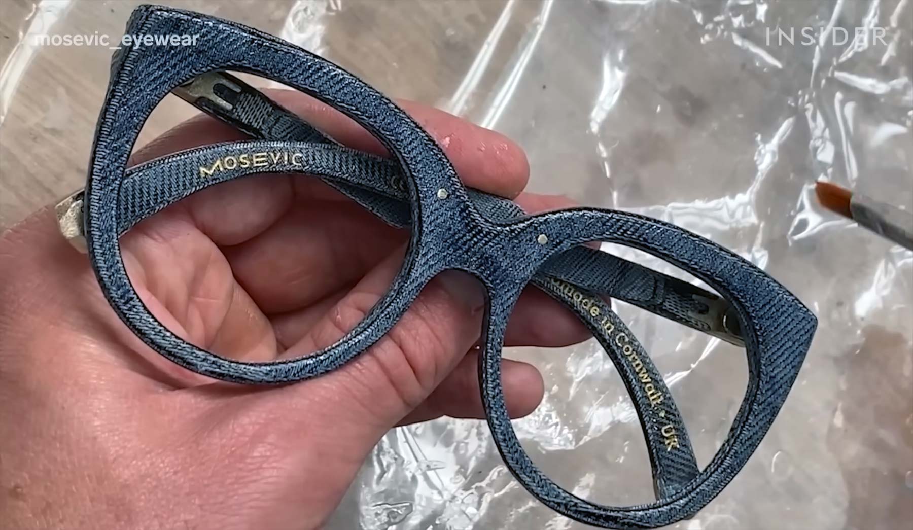 Jack Spencer started making glasses over 10 years ago. Now he runs his eyewear business, Mosevic, out of Cornwall, England. He creates glasses out of resin-infused recycled denim.