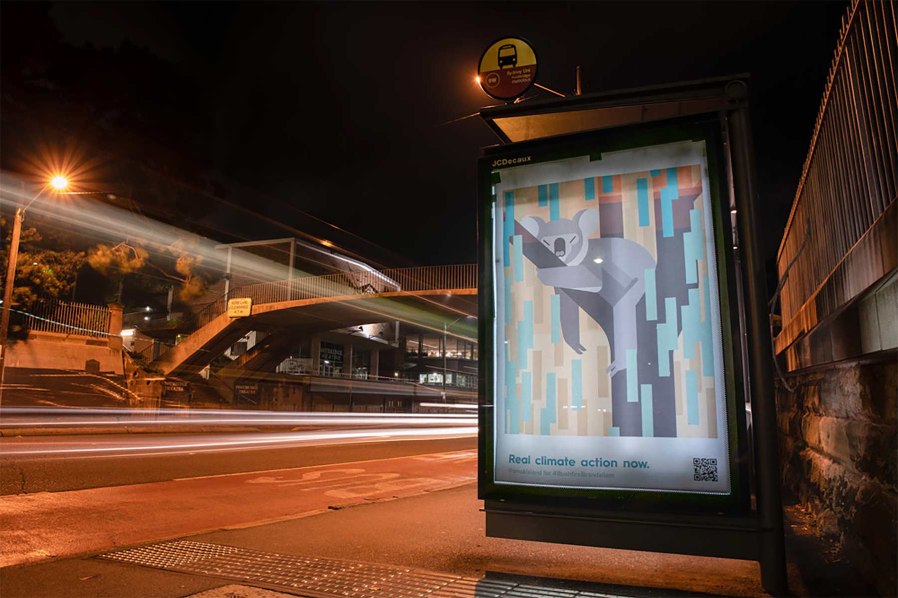 41 Künstler haben sich in Australien zusammengetan, um „Bushfire Brandalism“ zu bilden. Die Guerilla-Art-Aktion hat vergangene Woche insgesamt 78 eigens kreierte Plakate an öffentliche Werbestellen gehängt, die auf kunstvolle Art und Weise auf den Klimawandel und seine Folgen aufmerksam machen sollen.