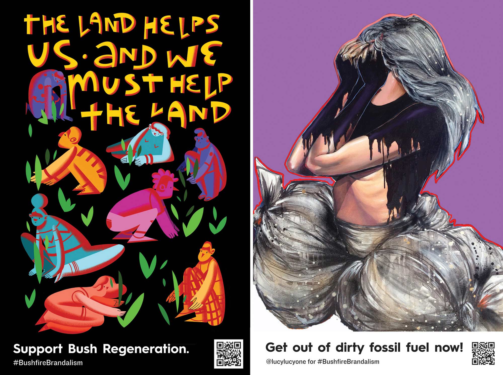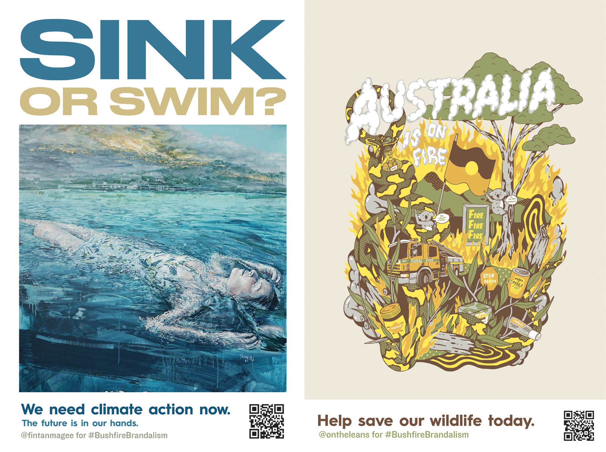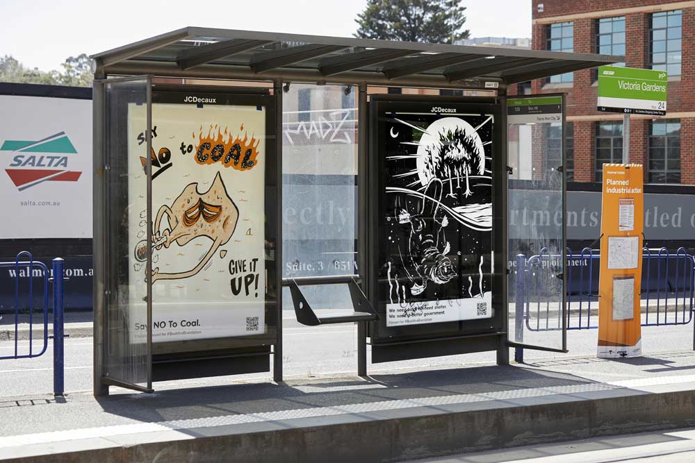 „As a collective group of Australian artists, we have been driven to reclaim public advertising space with posters speaking to the Australian government’s inaction on climate change and the devastating bushfires. We do not accept that this situation is ‘business as usual.’ We are making these issues visible in our public spaces and in our media; areas monopolized by entities maintaining conservative climate denial agendas. If the newspapers won’t print the story, we will!“