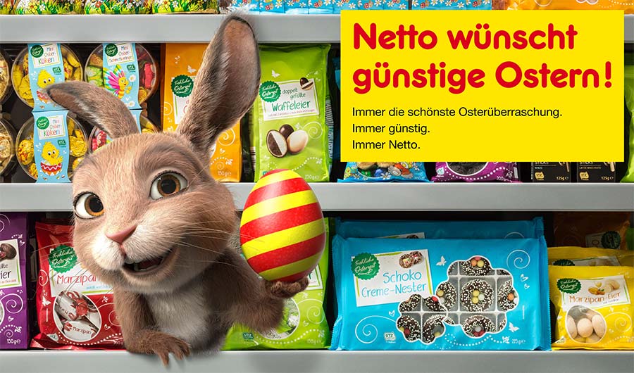 Jetzt wissen wir es also endlich! Erst war die Henne da, dann der Hase, dann das Ei – und viele weitere. Alles zum liebevoll gestalteten Film und zur Osteraktion (mit Gewinnspiel und Osterbastelkrams) gibt es hier zu sehen, Weiteres zum Angebot Nettos gibt es auf deren Website und einen Blog haben die sogar auch. Fehlen eigentlich nur noch die Eier… (wieso muss ich hier an Oliver Kahn denken!?). Die kann man aber sicherlich irgendwo kaufen. An einem Ort, wo es Marken zu Discountpreisen gibt zum Beispiel? Hm…