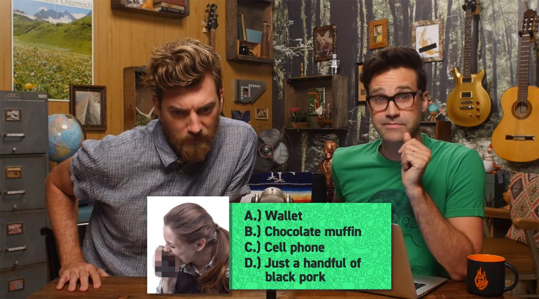 Im Rahmen ihrer Good Mythical Morning Show haben Rhett und Link ein simples wie unterhaltsames Ratespiel gespielt: Stockfotos, auf denen Leute in etwas beißen, das verpixelt wurde. Worum es sich handelt ist gar nicht so einfach – und ideal zum Mitraten!