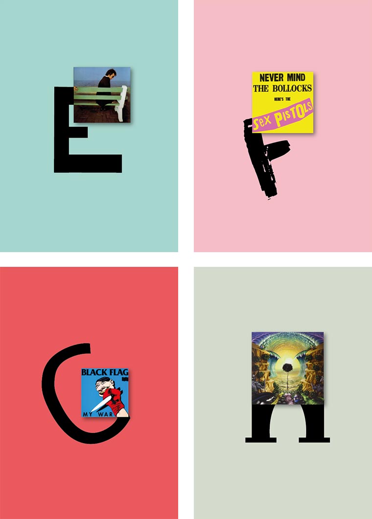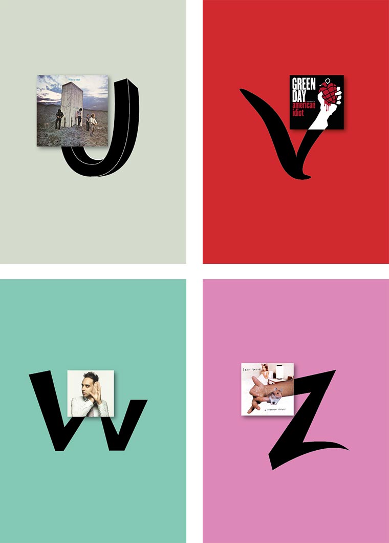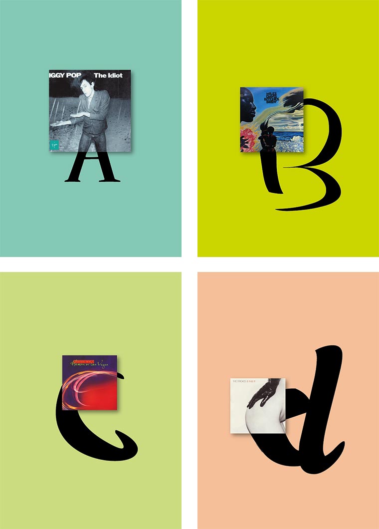 Ein Alphabet von „I“(ggy Pop) bis „S“(onic Youth)? Nicht ganz. Priscilla Fois Missk aus Rom hat aus den entsprechenden Plattencovern ein Alphabet gezaubert. Visuelle Assoziationen verbunden mit 26 Buchstaben – fertig ist das Platten-Alphabet. Nur schade, dass sie keine passenden Motive gefunden hat, bei denen Albumtitel oder Artistname zum jeweiligen Buchstaben gepasst haben. Das hätte es perfekt gemacht!