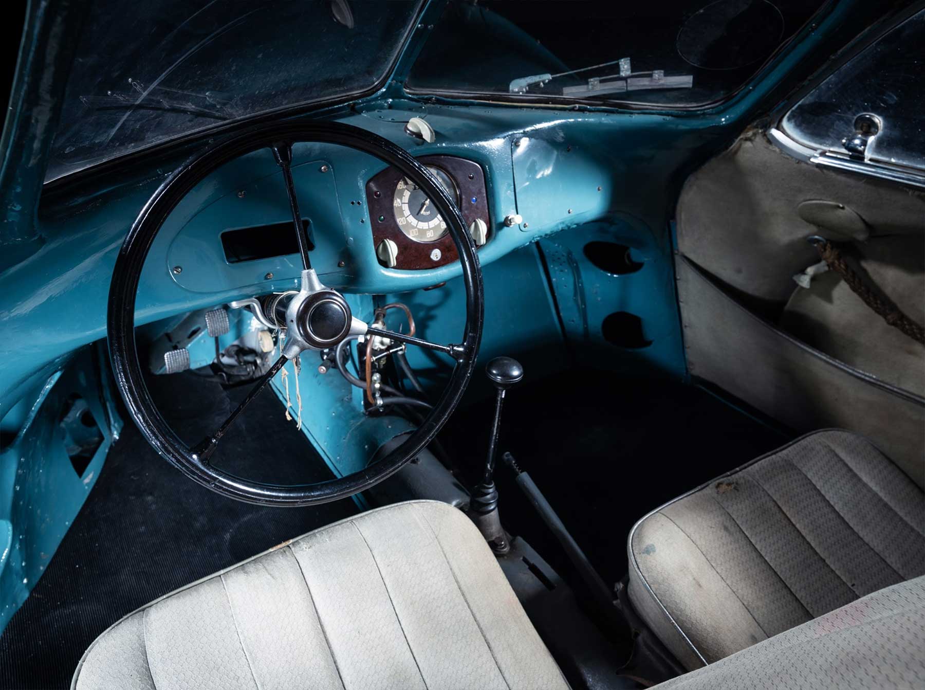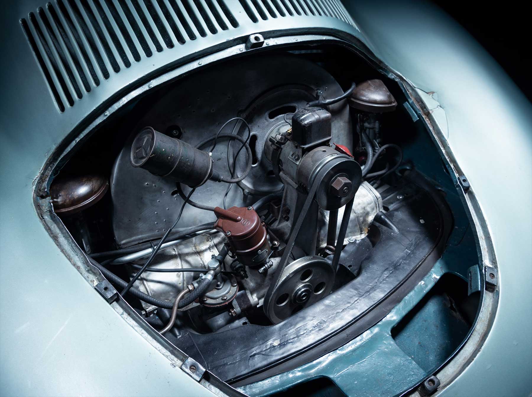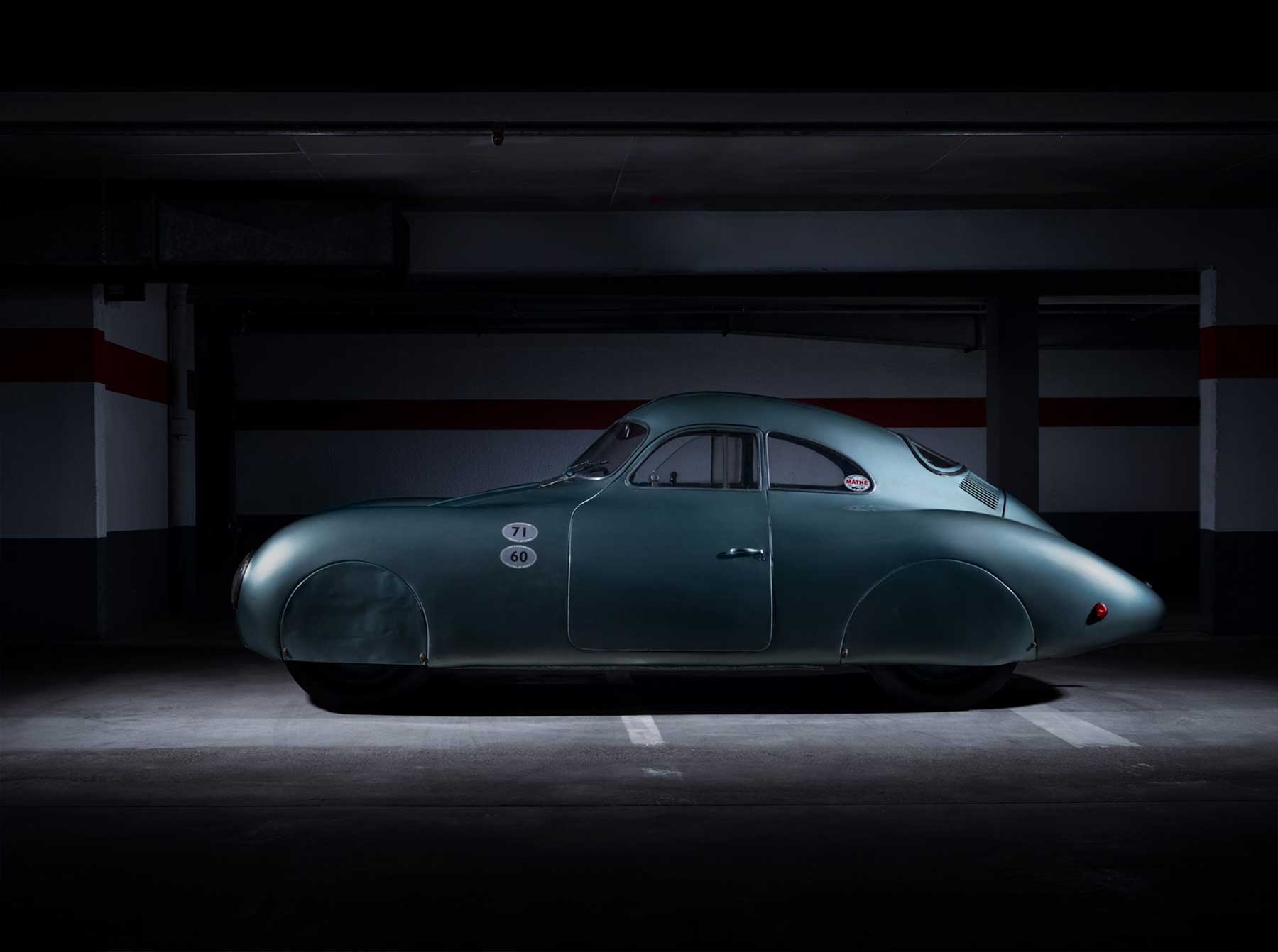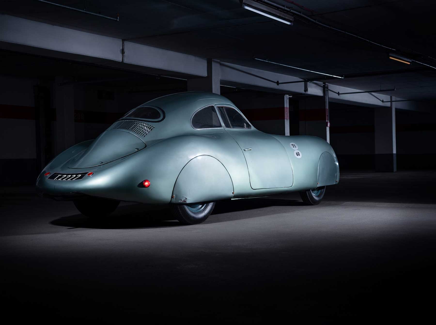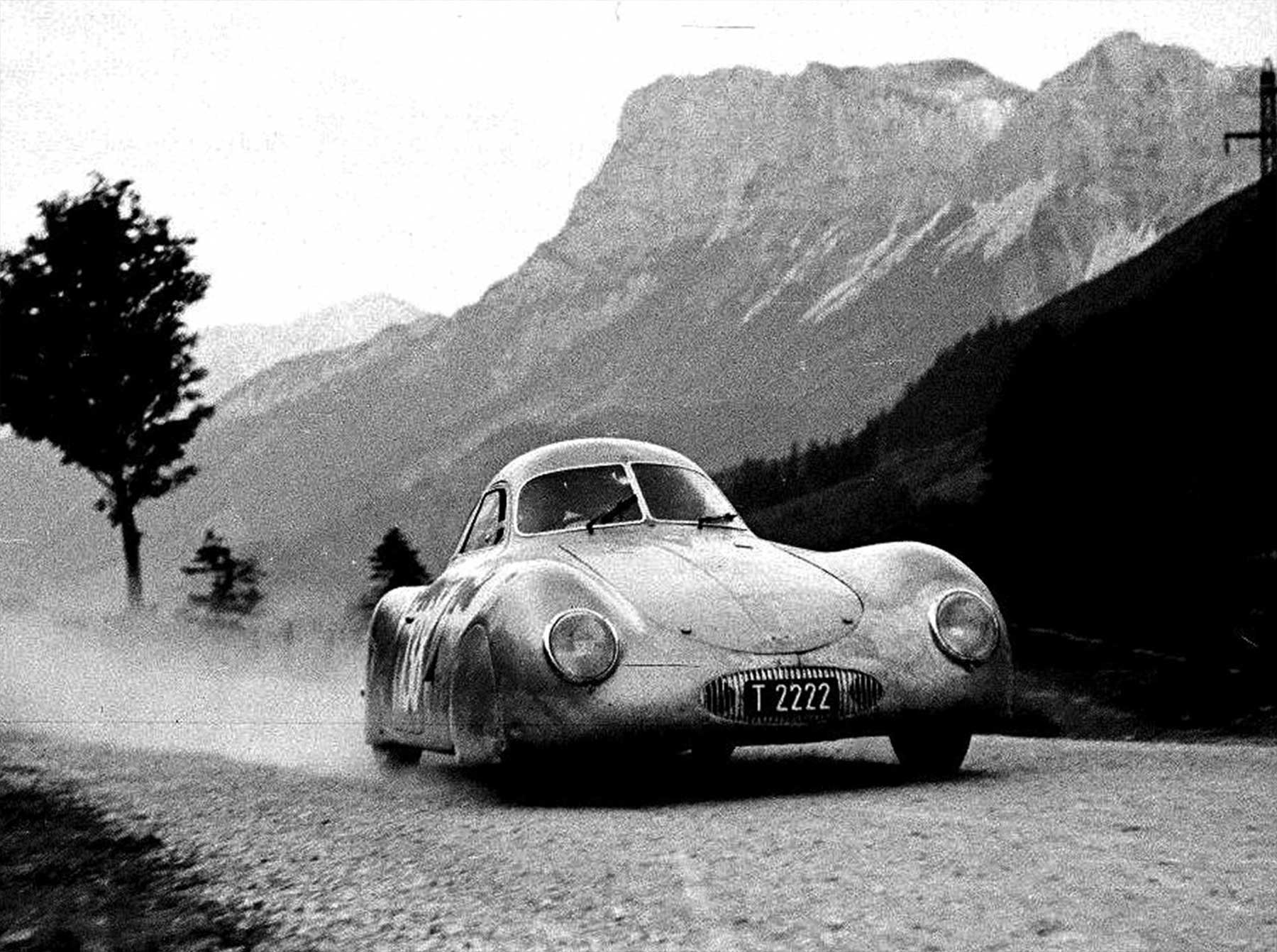 „It was a road race that never took place that would give birth to the Type 64. The 1,500-kilometer Berlin-Rome race was set for September 1939 and would be used to promote Germany’s autobahn system as well as celebrate the launch of the KdF-Wagen production car. In preparation for the race, the government-owned Volkswagen commissioned three special long-distance racing versions of the KdF-Wagen, known internally to Porsche and his engineers as the Type 64. Designed by the same engineers who would go on to create the 356, the cars were built at Reutter Works across the street from Zuffenhausen over 1939-1940, with lightweight aluminum bodies and the wheels fully covered in removable alloy panels.“