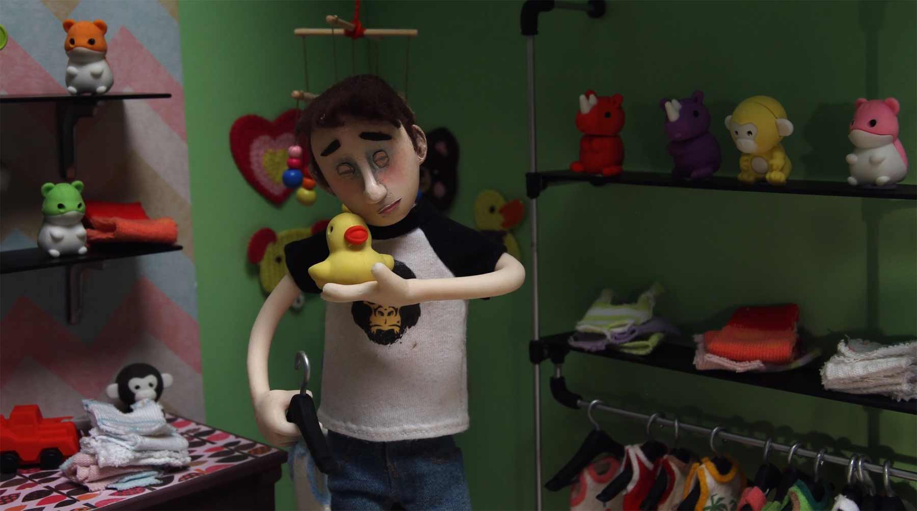 Mit „Pregnant“ liefert uns Mascha Halberstad einen unterhaltsamen Kurzfilm über einen Mann, der entdecken und sich der Tatsache stellen muss, dass er schwanger zu sein scheint. Neben der gut getimeten Geschichte, die mit viel Liebe (auch zum Detail) erzählt wird, gefällt mir vor allem der Darstellungsstil. Die Stopmotion wirkt natürlich und flüssig und vor allem kleine analoge Lösungen zu Flüssigkeiten oder Spray sind in ihrer Umsetzung sehr gelungen.