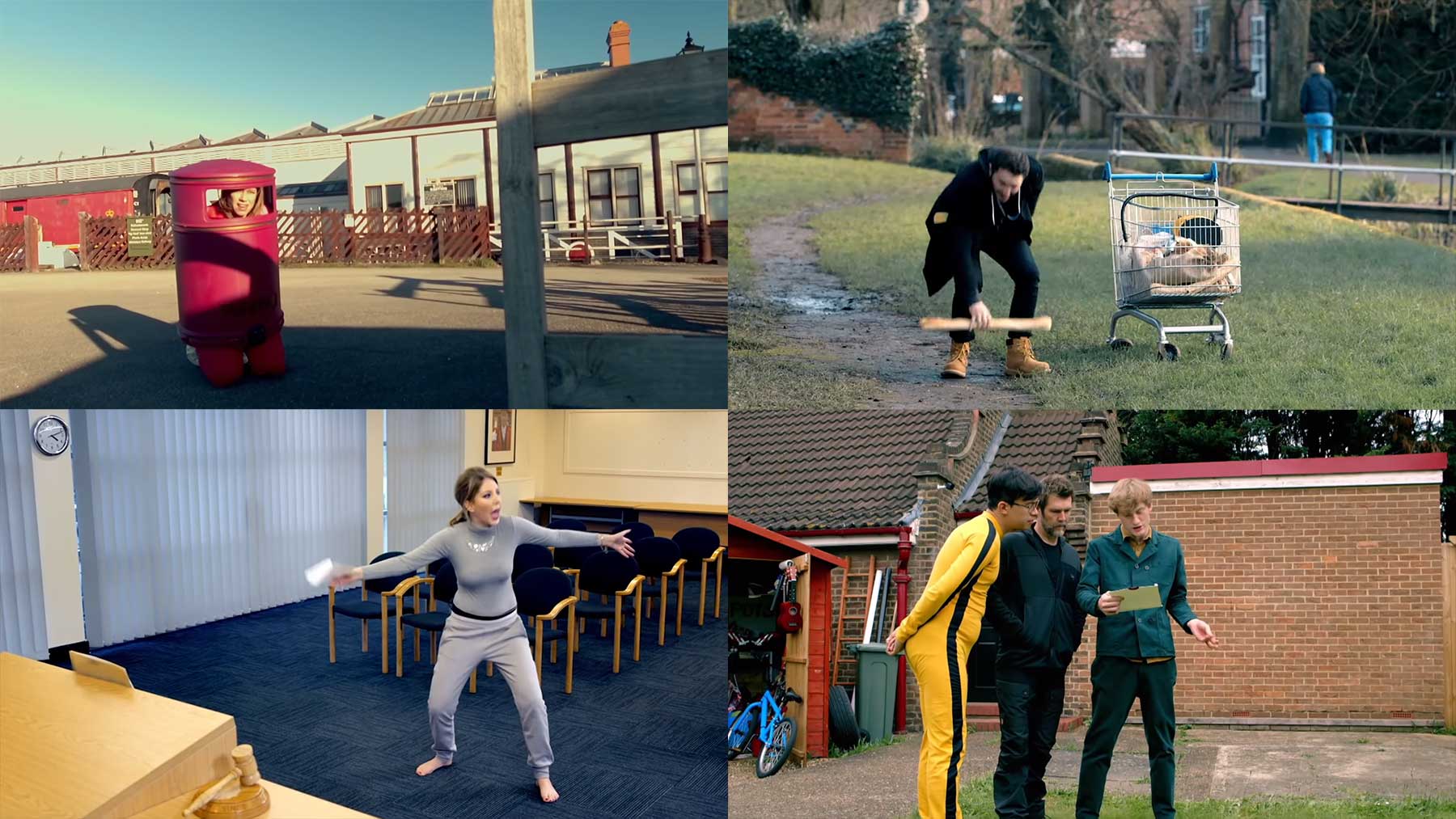 „Katherine Ryan, Joe Wilkinson, Jon Richardson, Doc Brown and Richard Osman attempt to impress the mayor of Chesham on series 2 of Taskmaster.“