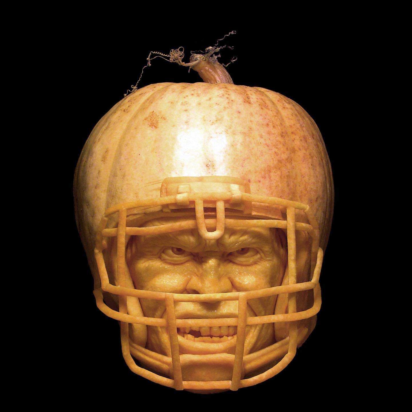 Halloween steht vor der Tür! In rund zwei Wochen verkleiden sich wieder etliche Leute, klingeln an fremden Türen, um Süßigkeiten von Fremden freudestrahlend anzunehmen – oder mit „Saurem“ zu bestrafen, dass die Langweiler nicht aufmachen. Fester Bestandteil des Horror-Spuk-takels sind auch Kürbisse. Ist halt gerade Saison, wieso nicht Verwendung für die orangenen Rundlinge finden? So hat sich der Brauch entwickelt, kleine Monster-Gesichter in die Rinde zu schnitzen und ein Licht ins Innere zu stellen, das wunderbar spookige Leucht-Effekte ermöglichen soll. Bei mir wären das zwei Augenschlitze und ein gezackter Mund, Ray Villafane würde bei solchen Standard-Schnitzereien nur müde lächeln und mit den Augen rollen. Der Kürbis-Künstler erschafft richtige Kunstwerke, kleine Skulpturen, die in mühesamer Kleinst- und Handarbeit aus dem Gemüse geschnitten werden.