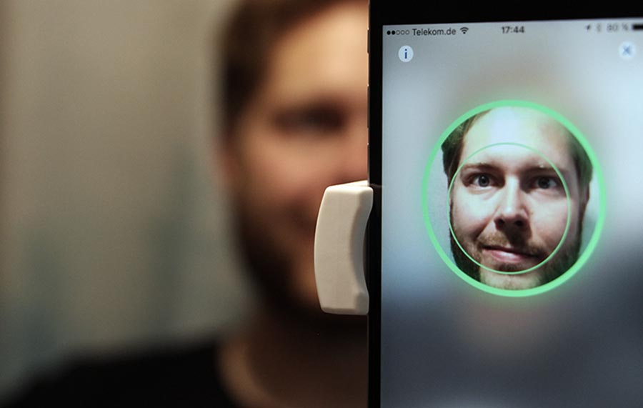Telefon rein und in der App den Punkt „Positionserkennung“ anwählen. Zu Beginn konfiguriert man noch die eigene Position, so dass das Gesicht auch entsprechend von der Kamera erfasst wird. Bitte lächeln!