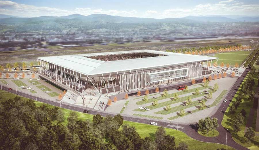Chelsea London hat seine Pläne bereits von der Stadt genehmigt bekommen und drängt in burgähnliche Kastenformen vor. Kostenpunkt: 600 Millionen – 10.000 Euro für jeden der 60.000 angedachten Plätze.