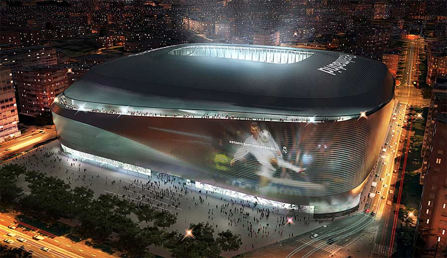 Wie ein CPU-Chip auf dem Mainboard sieht dieses Konzeptbild der möglichen neuen königlichen Bleibe aus. Ist der Deckel aber erstmal auf und man schaut von der Seite – sieht man Ronaldo überlebensgroß auf einer Mega-Leinwandsfassade. Passend dazu ist gleich eine ganze Mall im Gebäude integriert. Warum auch nicht?