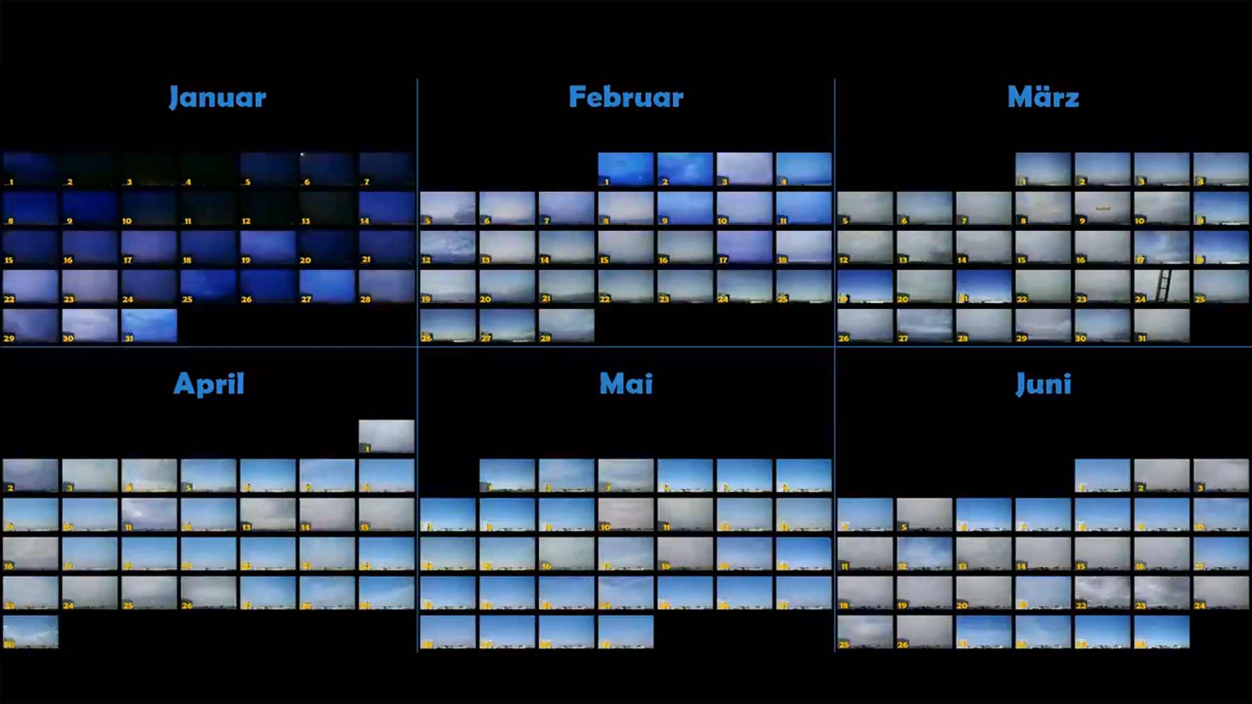 Eine interessante Übersicht in Kalenderblattform von Twitter-User J. Lorenz zeigt uns den Berliner Himmel des ersten Halbjahres 2018. Jeden Tag wird es hell und wieder dunkel, formen sich Wolken und brechen Sonnstrahlen hindurch. Nur eben in verzögerter Form. Man achte auch mal auf den Tag der Sommerzeitumstellung.