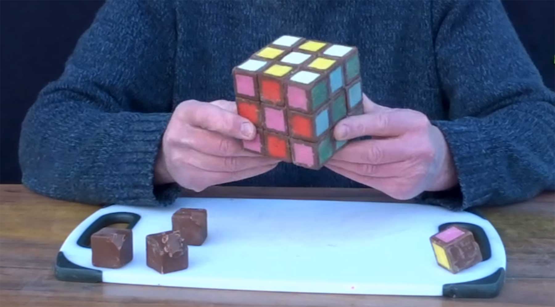 Nachdem Zauberwürfel-Designer Tony Fisher uns bereits Varianten aus Eis oder mit brennenden Kerzen präsentiert hat, wird es jetzt kulinarisch. Seine neueste Kreation besteht nämlich aus Schokolade, was eine ganz neue Challenge erschafft: Lösen, bevor das Teil in den Händen zerschmolzen ist. GO!