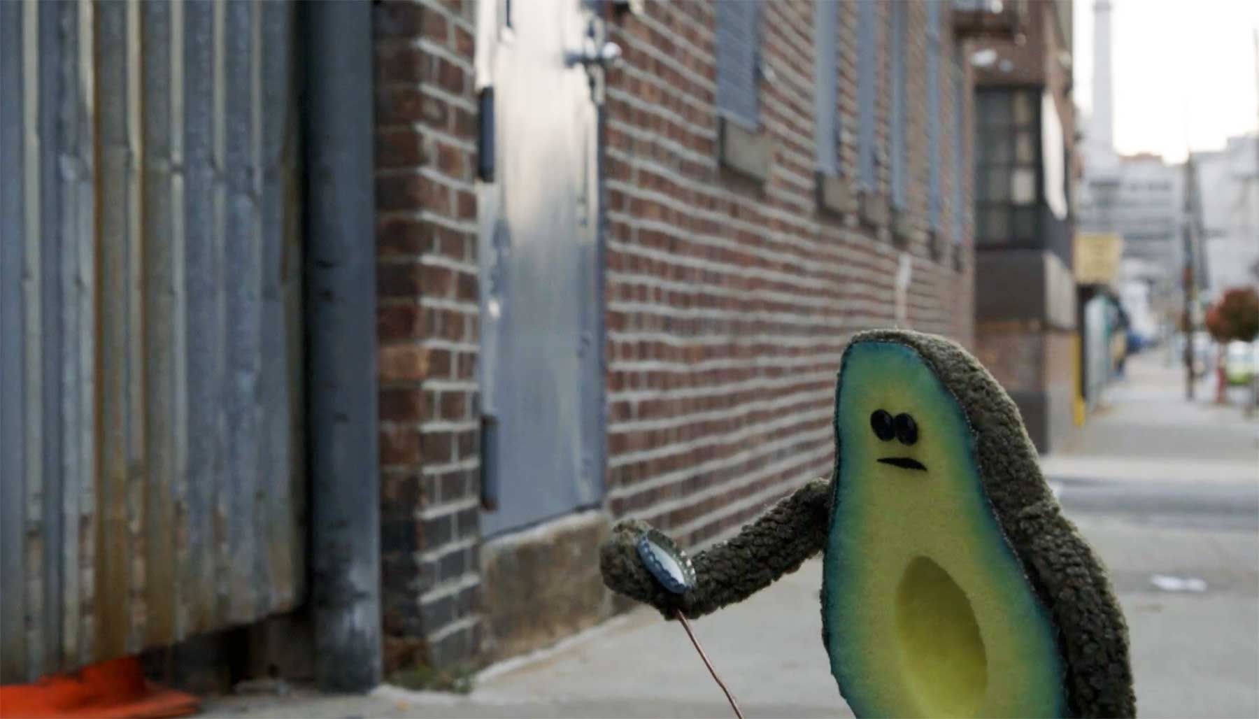 Hach, wie goldig! Wir sind ja alle irgendwie auf der Suche nach unserem inneren Kern und einer besseren Hälfte, die einen vervollständigt. Beides wird „The Pits“ unter der Regie von Mike Hayhurst und mithilfe einer kleine Avocado-Puppe versinnbildlicht und gespielt, die auf der Suche nach dem Etwas ist, das ihre kleine Anti-Kugel in der Bauchregion auszufüllen vermag.