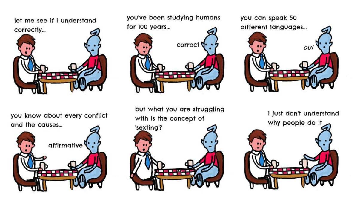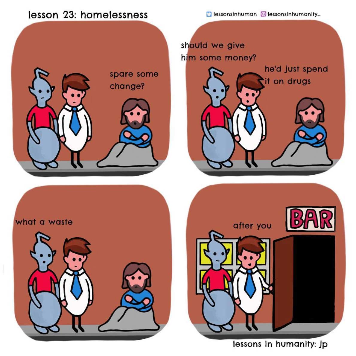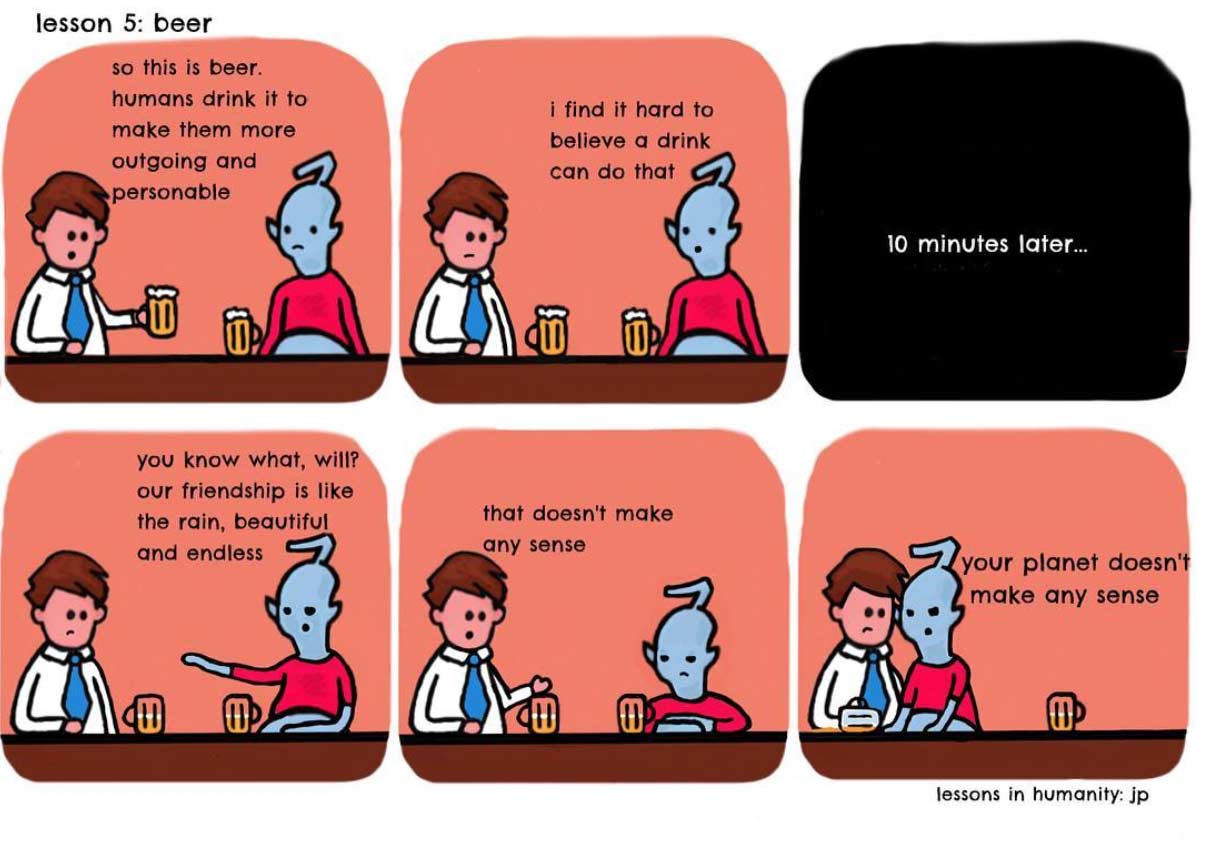 „Lessons in Humanity“, also Nachhilfe in Menschlichkeit, bräuchten viele Leute auf der Welt heutzutage. Der gleichnamige Webcomic abstrahiert das Ganze und versucht die Kuriositäten des menschlichen Verhaltens zu ergründen, als müsse man sie einem Alien erklären. Das heißt Armstrong und wird durch seinen menschlichen Mitbewohner Will im Fach „Mensch“ unterrichtet. Originelle Unterhaltung mit viel Witz und Gesellschaftskritik. Wir sind schon eine komische Rasse…