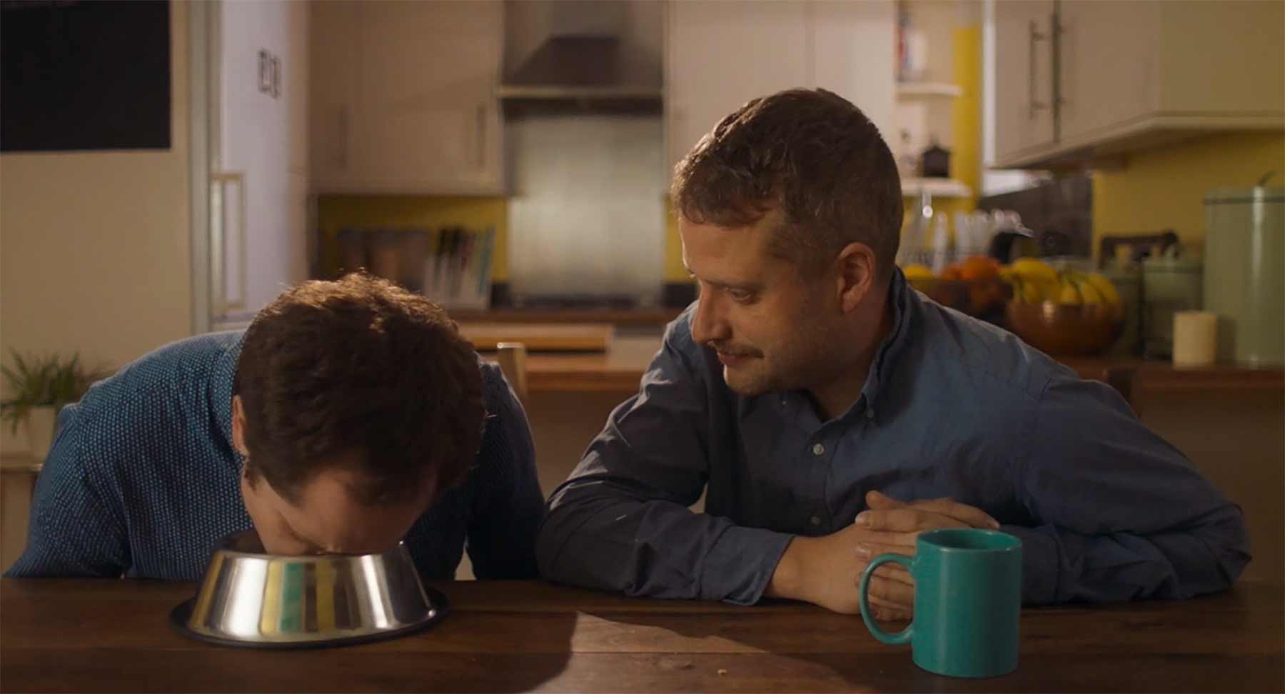 Tiere zu vermenschlichen war schon immer eine gute Möglichkeit, für Schmunzler zu sorgen, wenn Tierbesitzer (und Tiere?!) die klischeehaften Eigenarten von Tierbeinern und Co. zu erkennen meinen (z.B. bei „Wilfred“ oder auch „BoJack Horseman“, um mal zwei gelungene Serien-Varianten zu nennen). In „Mister Biscuits“ wird selbiger vermeintlicher Hund von einem Mann gespielt. Der Kurzfilm von Tom Levinge erzählt dabei auf herzliche Art und Weise die Geschichte um die Emotionen zwischen einem Hund(emann) und seinem Aufpasser. Der Dreh dürfte mit einem Menschen dazu viel einfacher umgesetzt worden sein, als mit einem echten Vierbeiner…