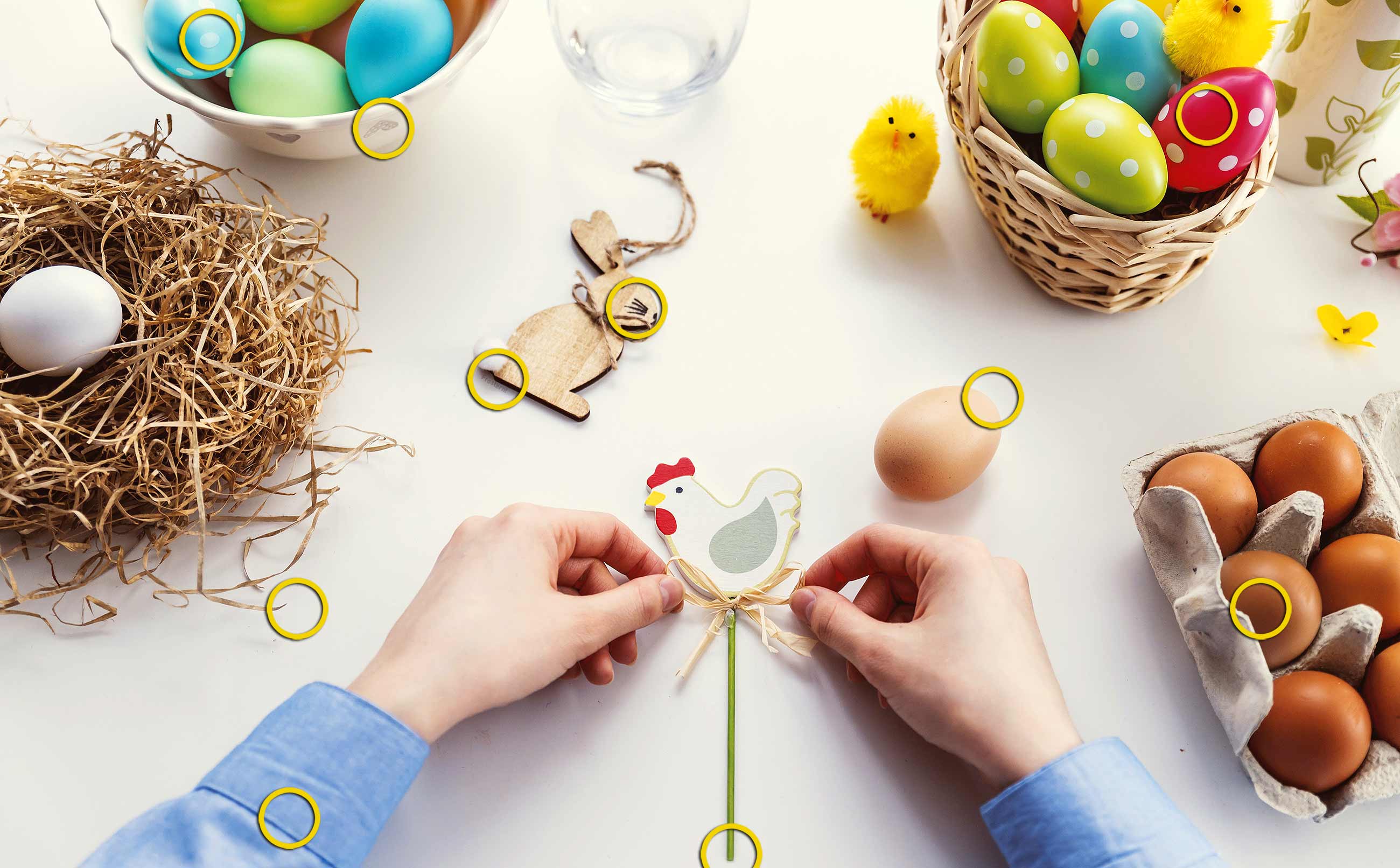 5. Am Osternest ist ein Heuhalm verkürzt.