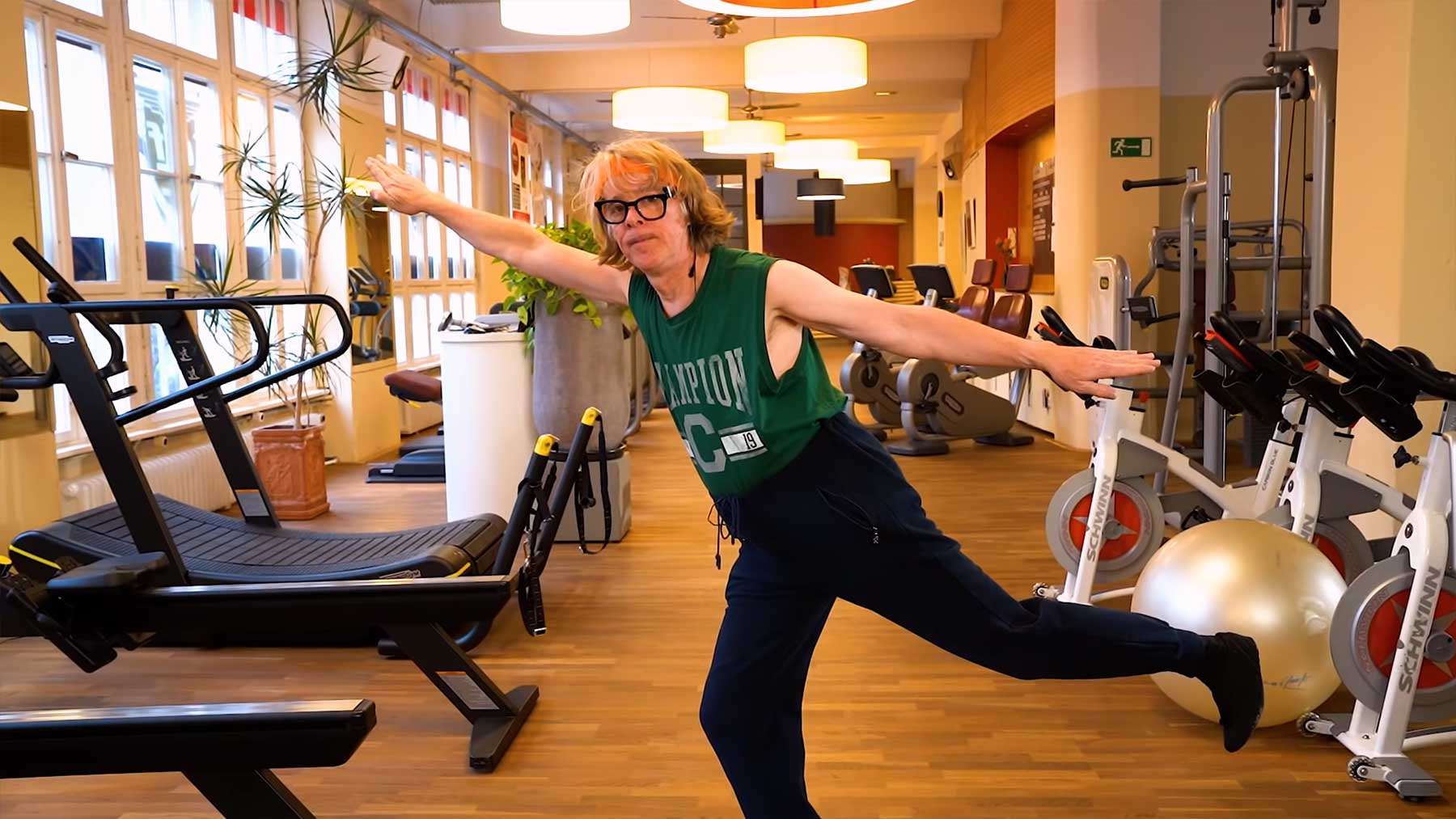 Ich nehme da glaube ich nicht zu viel vorweg (ist durch die Überschrift ja jetzt eh zu spät…), wenn ich euch sage, dass es in der Verfilmung von „Die Känguru-Chroniken“ eine Szene gibt, in der Helge Schneider höchstpersönlich ein kleines Workout-Programm präsentiert. Ob früh oder spät ist ja eigentlich wurscht, durch die aktuelle Zuhausebleib-Situation kann Bewegung ja allgemein nicht schaden. Deshalb freue ich mich sehr, dass Marc-Uwe Kling nach der digitalen Bereitstellung des kompletten Filmes nun auch „Frühsport mit Helge“ in voller Länge online für uns bereit gestellt hat. Und das sogar für lau! Na, wer dem Kängurur da nicht folgt und fit wird, ist selbst schuld…