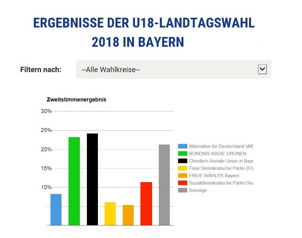 Wie bei der Bundestagswahl letztes Jahr auch, darf man in Bayern erst ab 18 Jahren wählen. Ein Fakt, den ich als politisch interessierte Jugendliche auch schon öfters kritisiert habe. Was aber der Masse an Politikern nicht wirklich schlaflose Nächte bereitet. Was aber nicht jeder weiß, ist, dass es seit 1996 zu jeder Wahl auch eine U18-Wahl gibt. Hier dürfen Jugendliche unter 18 Jahren immer neun Tage vor einem offiziellen Wahltermin ihre Stimme abgeben. Natürlich zählt die U18-Wahl nicht offiziell zum amtlichen Endergebnis mit, aber man sieht wie die Stimmung unter den Jugendlichen zum Thema Politik ist.