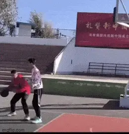 Hintergrund-Erklärung: Hier bekommen wir seltene Aufnahmen aus dem Inneren des deutschen Bundestages zu sehen. Zunächst links im Bild stehend hat ein gewisser Christian Lindner den Ball. Der FDP-Spitzenpolitiker (so genannt, weil er an der Spitze der Partei FDP steht, nicht weil er spitze als Politiker ist) will den amtierenden Bundeskanzler Olaf Scholz (so genannt, weil er tatsächlich – mag man kaum glauben – amtierender Bundeskanzler ist) austricksen und die Regierung ausdribbeln. Letztlich scheitert er aber an seinem eigenen Unvermögen und ihm fällt die Decke auf den Kopf. Wie sinnbildlich! Okay, zugegeben, das passt nicht perfekt, immerhin hat GIF-Lindner ein SPD-rotes Oberteil an. Vielleicht sehen wir hier doch Olaf Scholz, der das Stellen einer Vertrauensfrage antäuscht, denn Leuten Dinge gegen Kopf wirft, um letztlich am Ziel vorbei zu schießen und in Ungnade zu fallen? Das könnte es auch sein. Mit absoluter Sicherheit hat das Bild jedenfalls etwas mit der deutschen Politik-Misere zu tun, in der wir stecken. Wobei: Blickt man gen Zukunft, sollten wir uns vermutlich noch glücklich schätzen in der Situation, in der wir momentan stecken. Für Ende Februar wird von manchen nämlich der Abbau des Korbes geplant, so dass gar keine Punkte mehr möglich sind – um mal in der Bildsprache zu bleiben. Das werden langweilige GIFparaden…