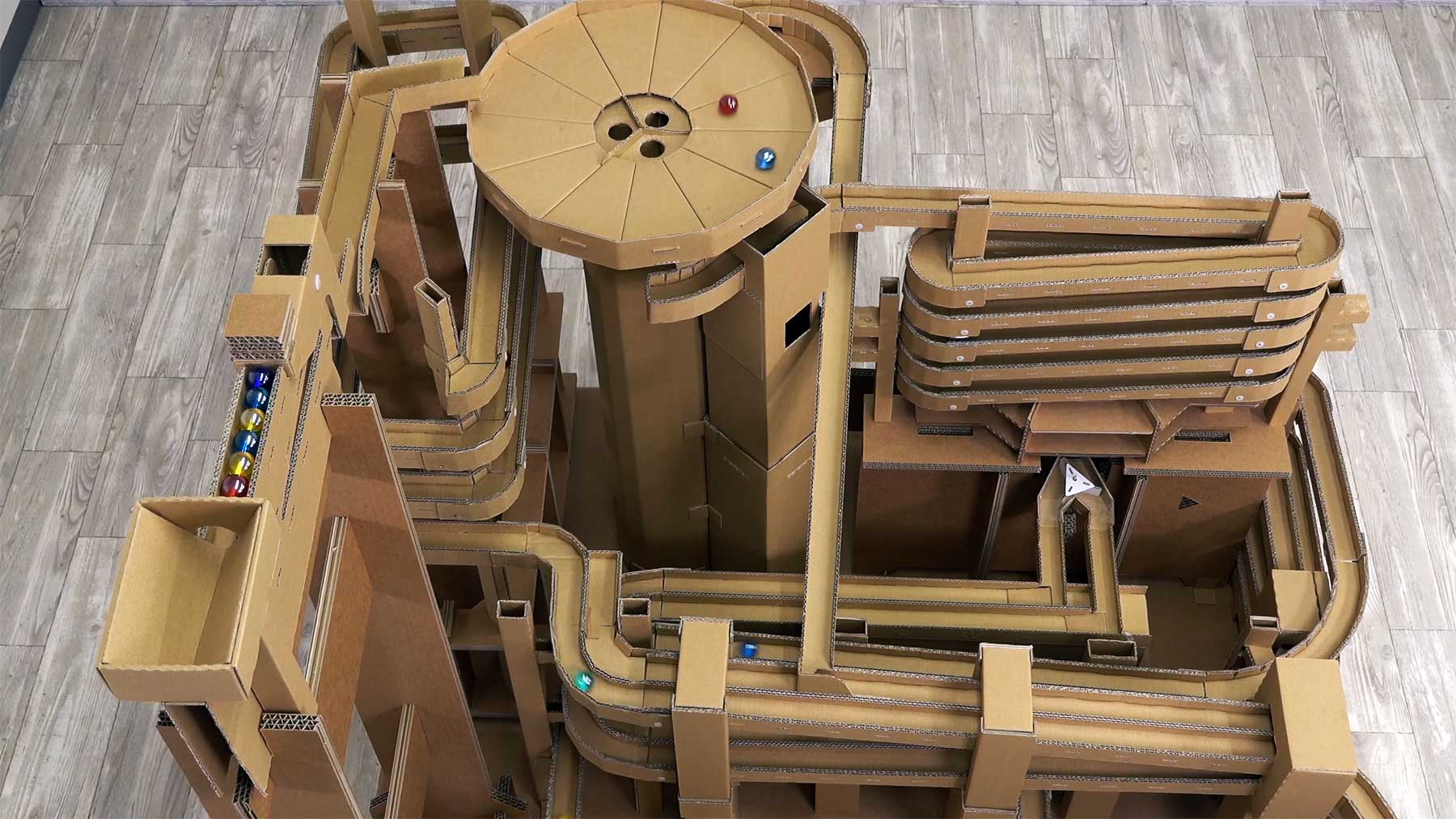Schönes Teil! DanCreator / Cardboard Crafts zeigt uns, wie man mit viel Hingabe, Zeit und Pappkarton eine ziemlich beachtliche Murmelbahn auf die Beine stellen kann.
