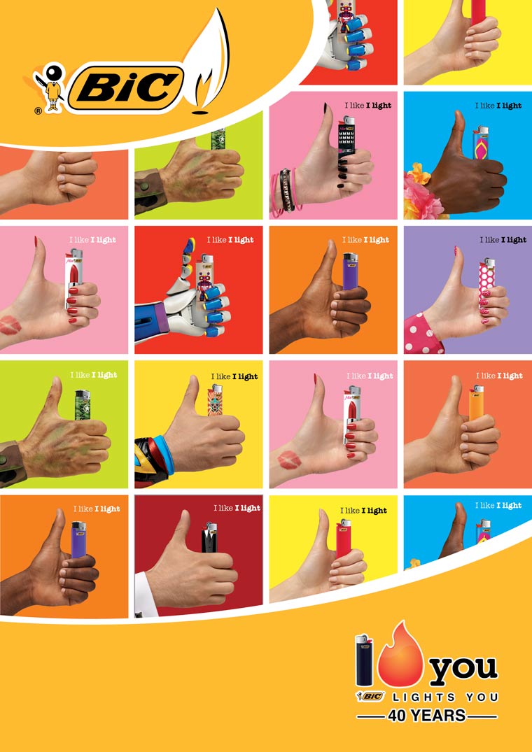 Zur Feier des 40. Geburtstages lässt BIC beim aktuell laufenden Wettbwerb Design On Fire Teilnehemr Designvorschläge für den Feuerzeugklassiker einreichen. Vom 3. Januar bis 13. Februar wurden 18 Finalisten ausgewählt, die jeweils bereits gewonnen haben. Jeder von ihnen erhält sicher 300 Exemplare mit seinem Design geschenkt. Der letztliche Sieger erhält satte 4.000 € und sein Design wird mit 1 Mio. Exemplaren in den Verkauf gehen.