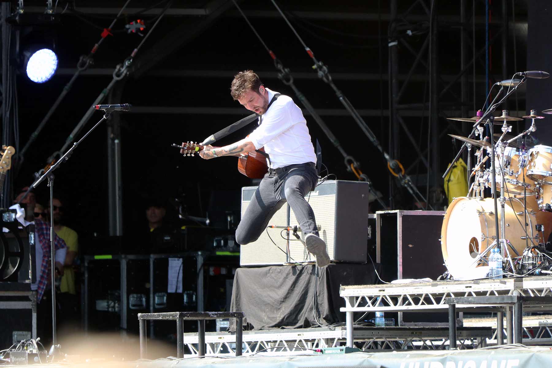 Der Schlaf hat über Razz obsiegt, so dass wir nicht rechtzeitig zum Festivalgelände gelangt sind. Auch die Alex Mofa Gang gab es nur aus der Ferne zu hören, so dass der geschätzte Frank Turner der erste wirkliche Act auf unserer Samstagsliste war. Der hat auch einfach mal eines der tollsten Foto-Motive des diesjährigen Hurricanes für mich eingesprungen – besten Dank!