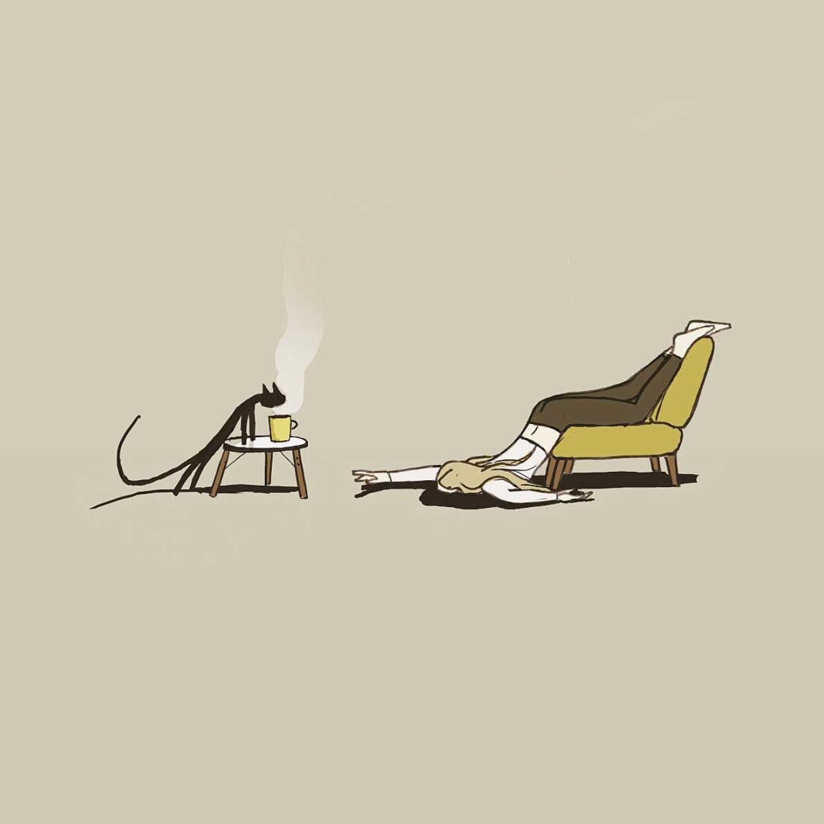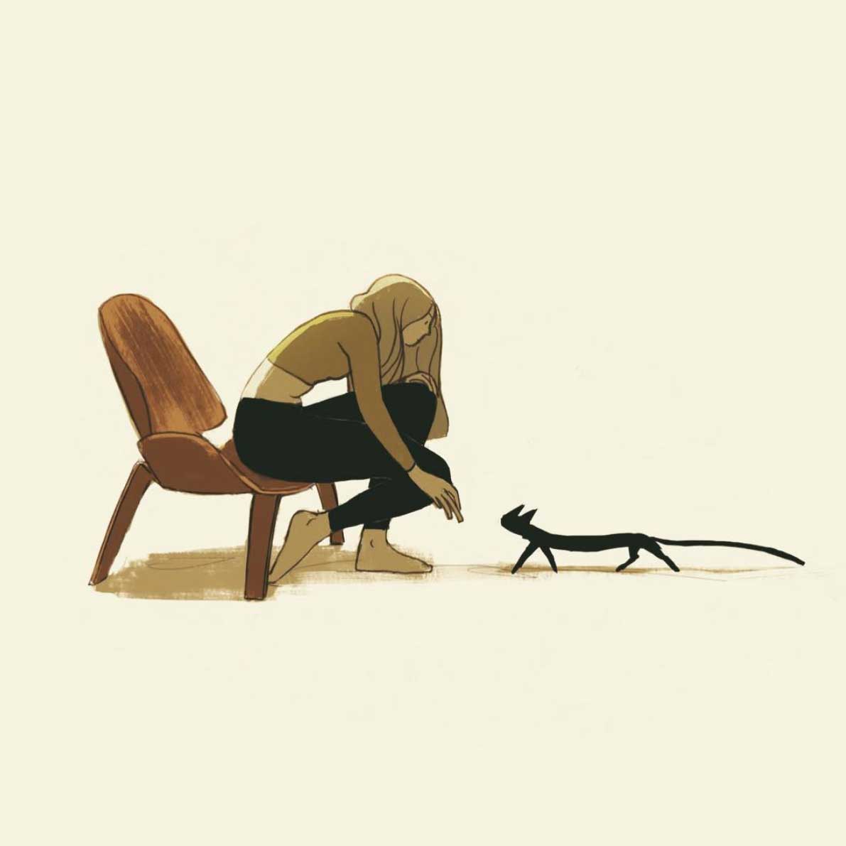 Als hätte man es mit dem Vornamen nicht bereits schwer genug, haben die Eltern von Manddy Wyckens sich erlaubt, ihren Vornamen auch noch mit zwei „D“ zu schreiben. „Manddy mit Doppel-D“ klingt auch direkt mal nach Förder-Unterricht in der Waldorfschule. Aber allen Buchstaben und total Fehl am Platz seienden Vorurteilen zum Trotz macht Wyckens vor allem tolle Bilder. Die Illustratorin und Animations-Künstlerin aus London weiß mit wohlbedachten und feinen Linien grazile Motive zu zaubern, die einen in den Bann ziehen, egal, ob statisch oder bewegt. Und bin ich der einzige, der bei den Motiven mit Katze unweigerlich an „Luci“ aus der neuen Matt Groening-Serie „Disenchantment“ denken musste?