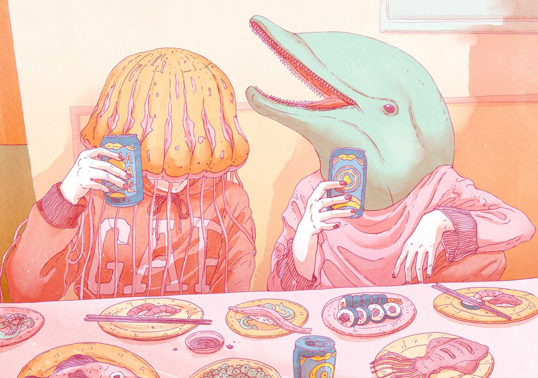 Die gebürtige Italienerin Elena Bansh lebt mittlerweile in London hat aber unter anderem bereits in Südkorea und Japan gewohnt. 2017 bis 2019 hat sie nach eigenen Angaben Zuflucht in surrealen Gedanken gesucht, als sie bemerken musste, sich in Japan nicht mit englischer Sprache vollständig integrieren zu können. Auch aus diesen Erfahrungen heraus hat sie fantasievolle Illustrationen erstellt, die ihre Lebensgefühle visualisieren. Hier eine Auswahl aus Bansh‘ aktuellem Online-Portfolio. Bei den Insta-Posts lohnt es, weiter zu swipen, da sich die kompletten Motive meist erst dann ersichtlich machen.