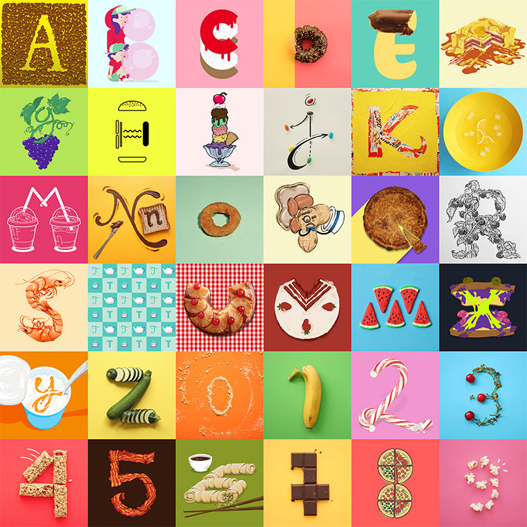 „Instead of simply creating a letter or number as we saw fit, we limited ourselves to a very familiar theme: snacks. Every number or letter that we created had to visually represent a snack. The name of the snack was determined by the letter it embodied.“