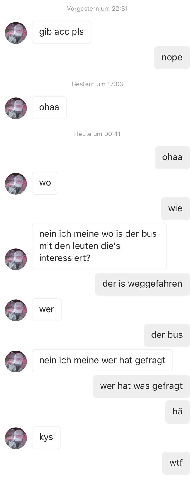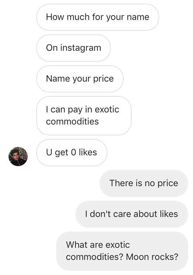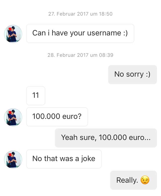 „People keep asking for my Instagram username. The funniest, strangest and most offensive messages will be posted here.“