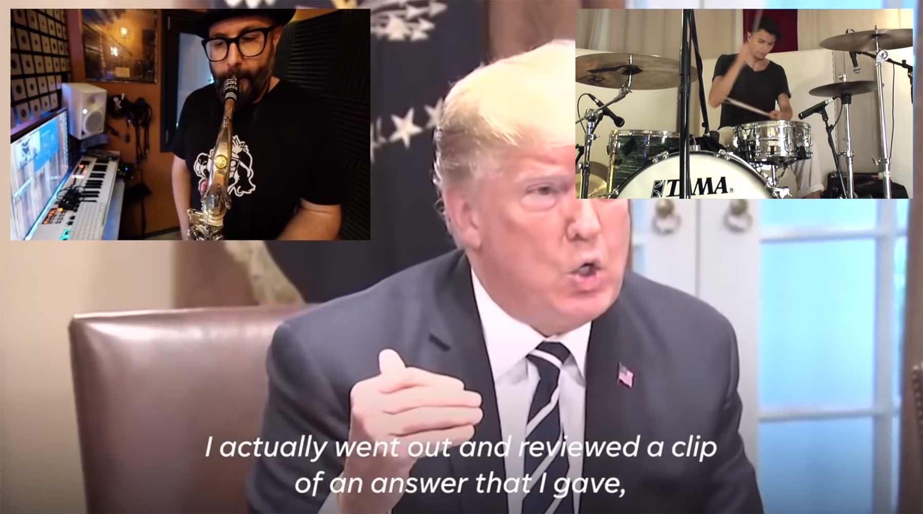 „Trump is making music great again! Axel Müller came up with this brilliant saxified version of Donald Trumps weird ‚Would Instead of Wouldn’t‘-Speech, Chris Nemet added Piano and I just had to lay some drums down to it.“