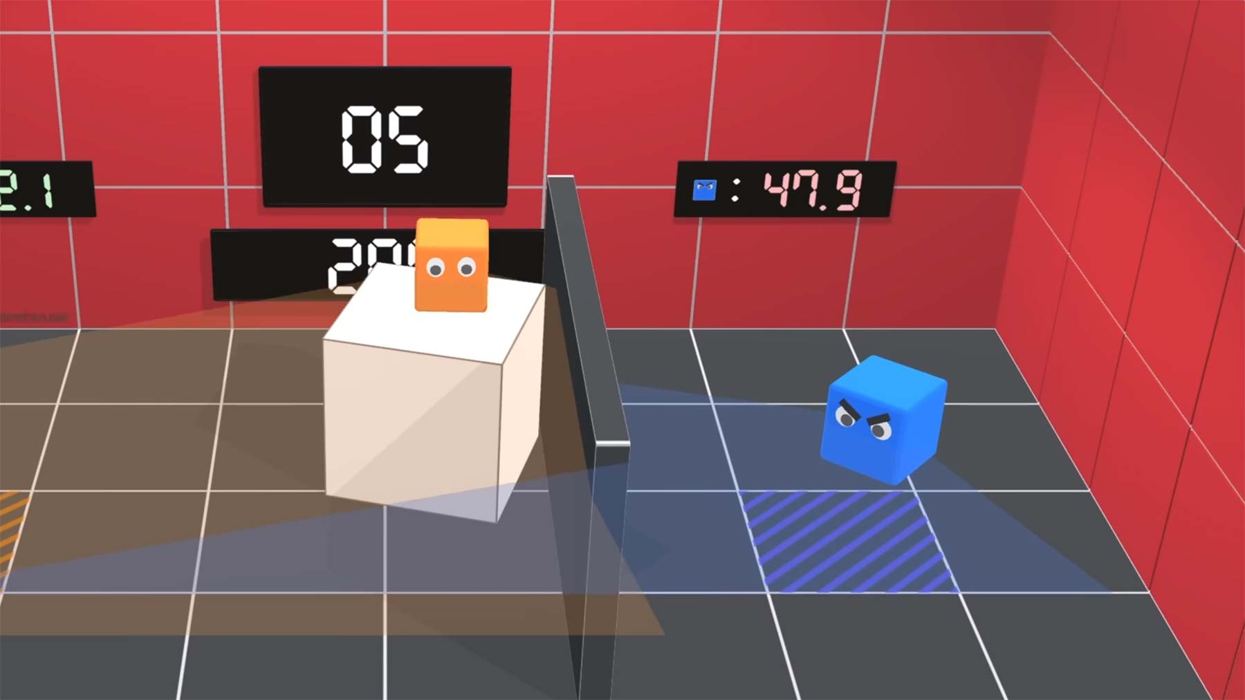 Ihr erinnert euch noch an Albert, oder? Das orangene Quadrat, das erst Laufen und dann Treppensteigen erlernt hat. Und, was kommt dann folgerichtig danach? Richtig: Fangen. Dafür braucht es natürlich eine zweite Einheit und so lernen wir Kai kennen, eine grimmig dreinblickende KI, die im AI Warehouse Jagd auf den flüchtenden Albert aufnimmt. Wie immer ist es sehr interessant anzuschauen, wie die künstliche Intelligenz nach und nach Verhaltensmuster dazu lernt.