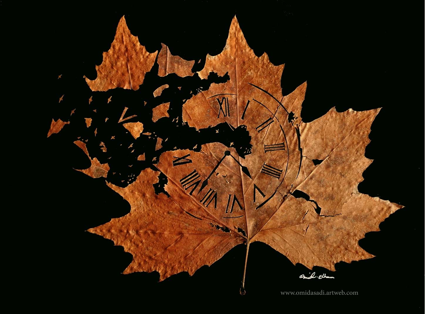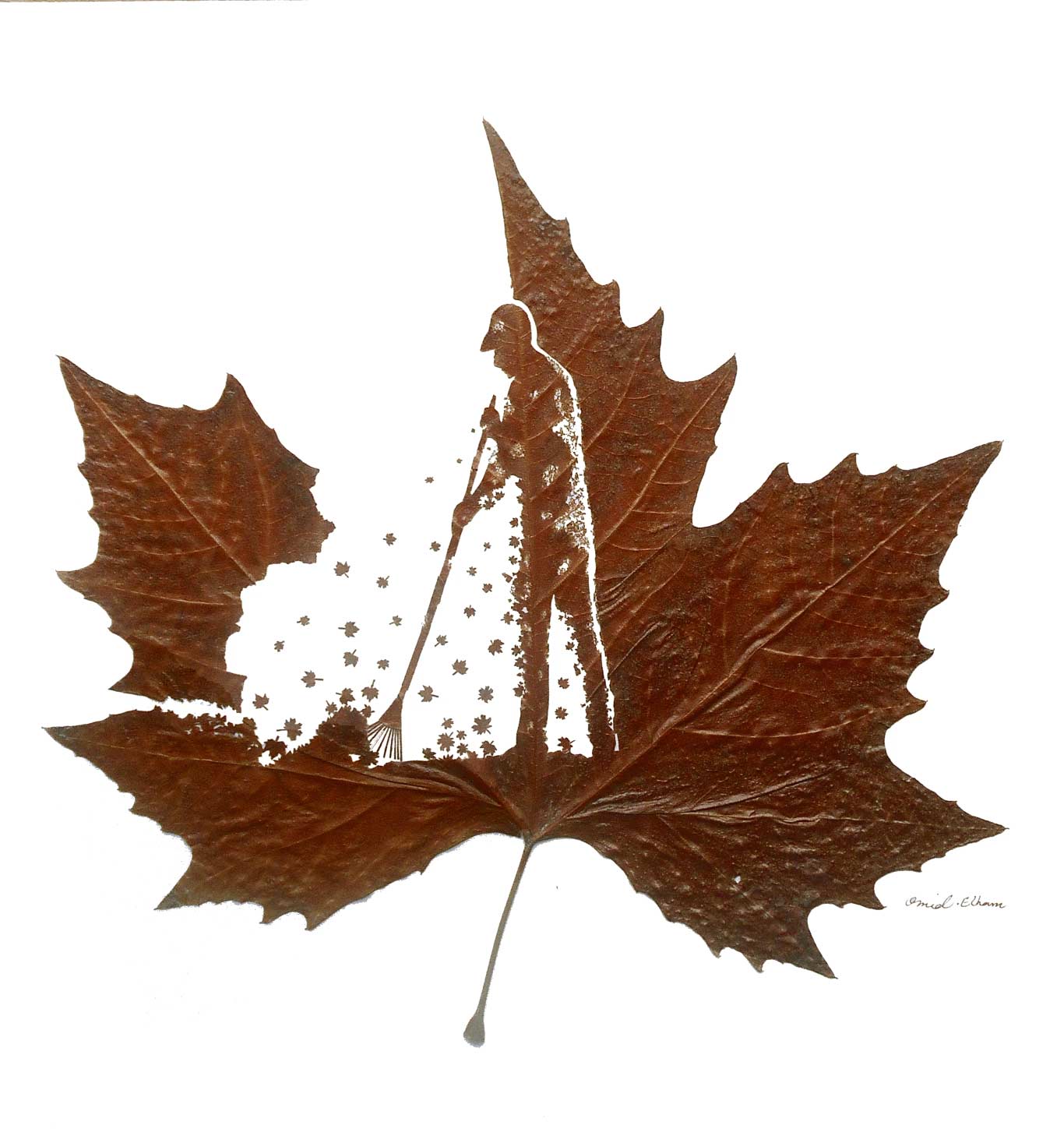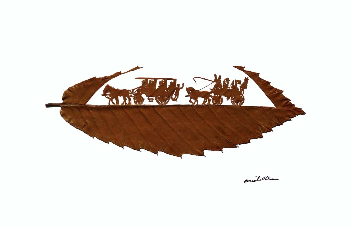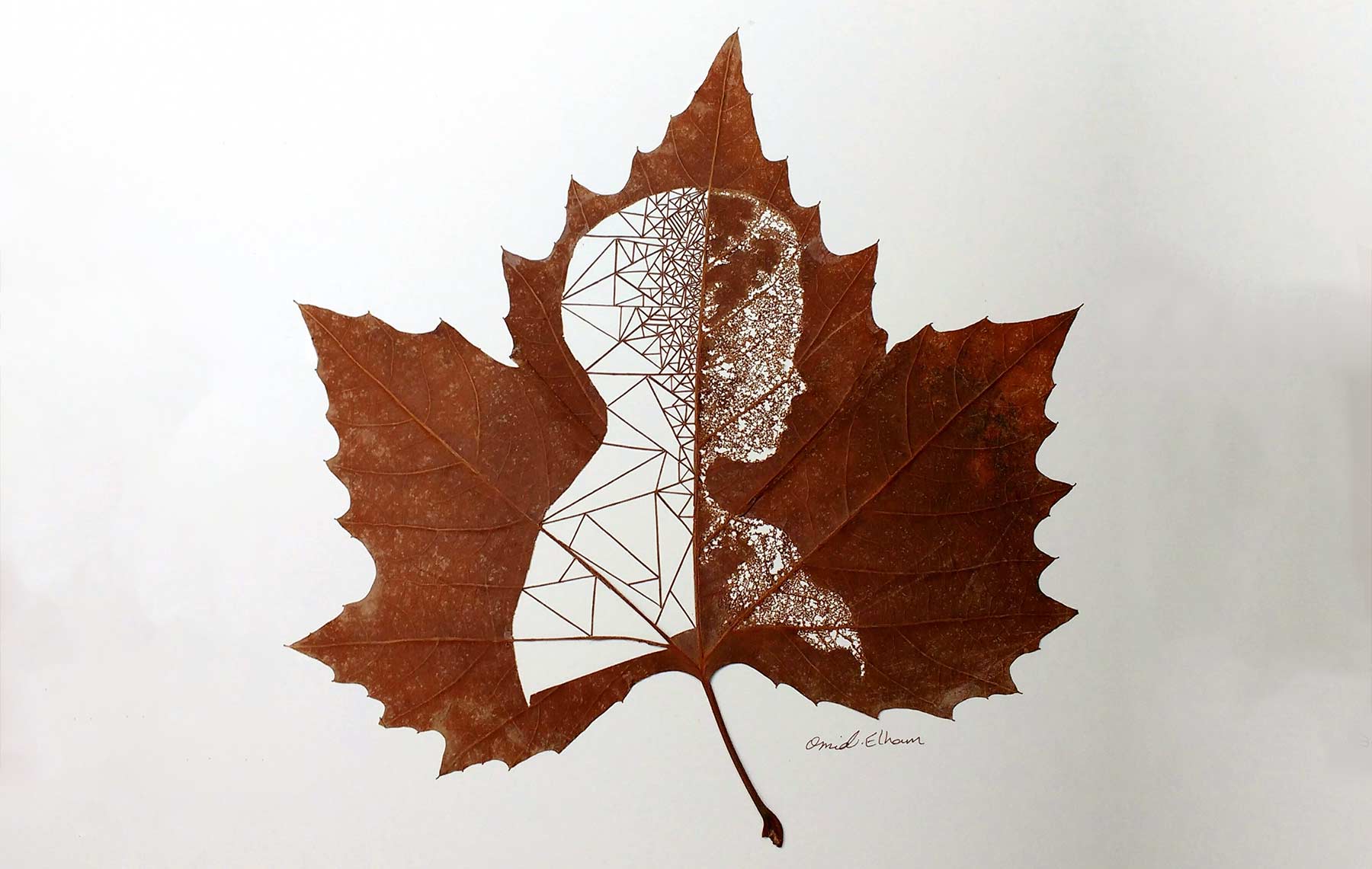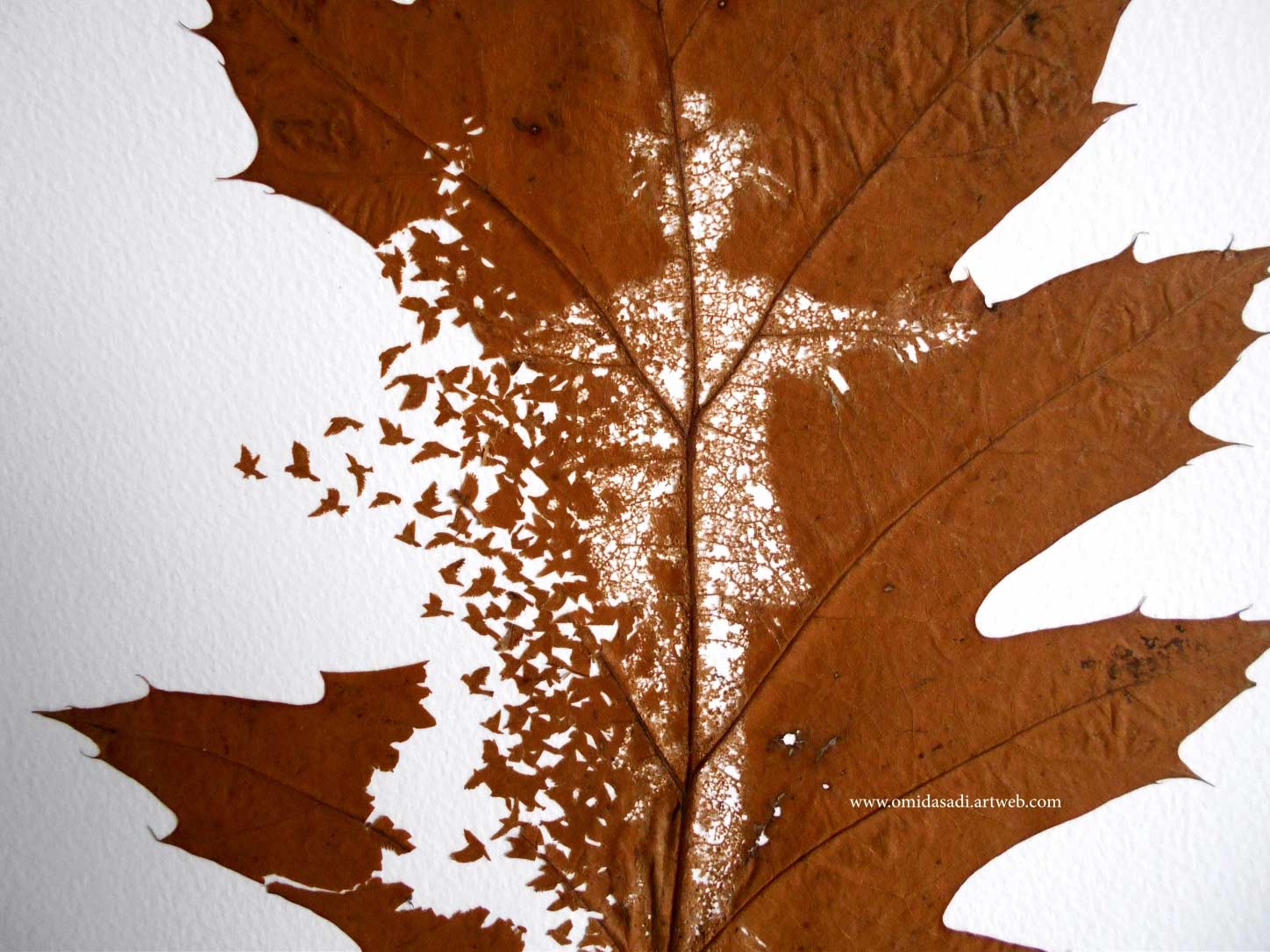 „My leaf art is rooted in my childhood when there was a deep emotional relation between me and nature. As a child, I used a needle to create shapes on leaves or fallen rose petals. I didn’t take this practice further until much later; in 2012 I decided to use leaves as the basic material.“