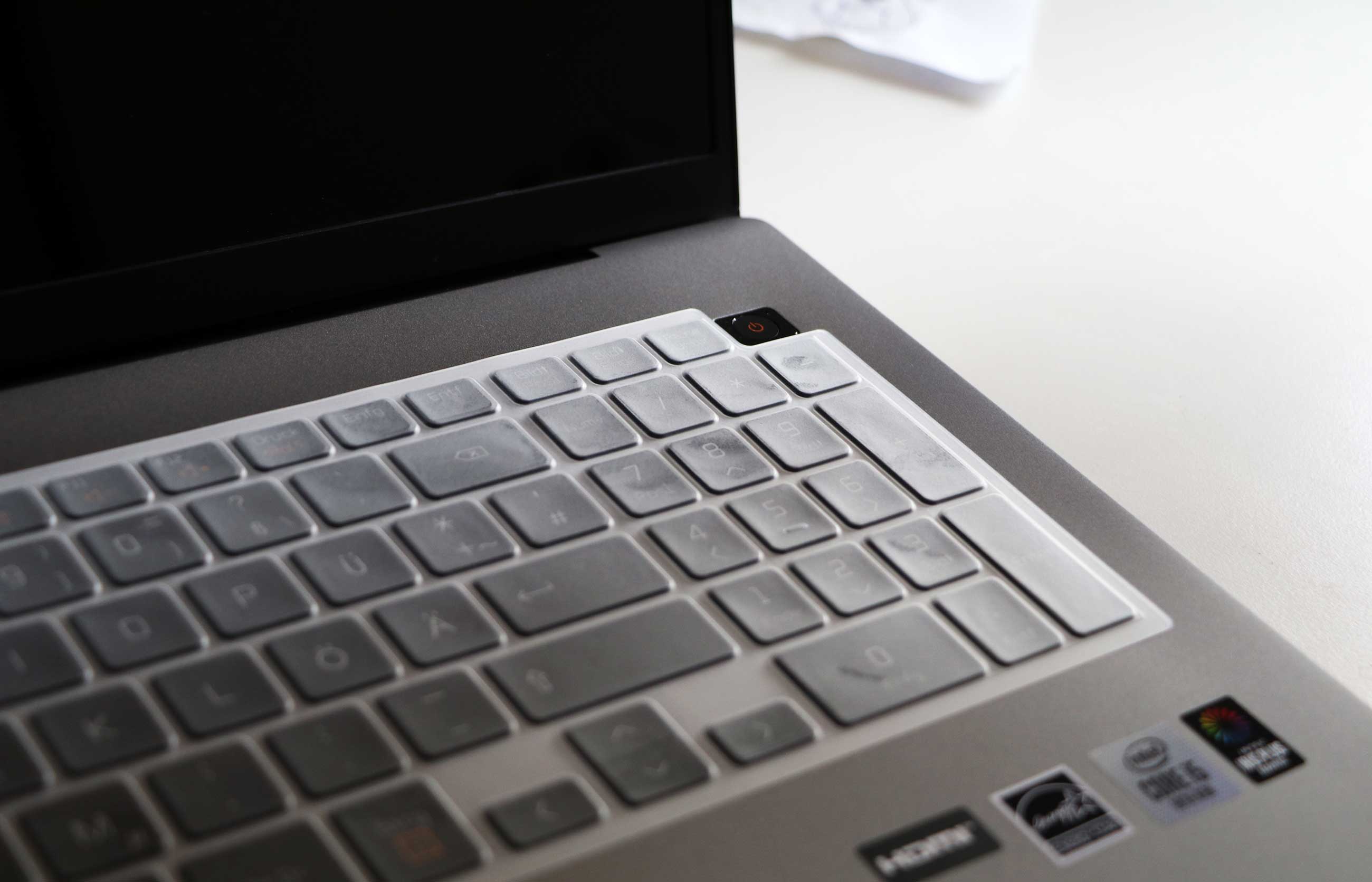 Yep, ihr seht richtig: Fingerabdruck-Sensor! Der ist im Gerät verbaut und sorgt so für eine weitere, zuverlässige Login-Option. Direkt am Power-Button, so dass bei Nutzung des richtigen Fingers das Gerät direkt in Windows springt. Und das dank eingebauter SSD-Festplatte (zumindest im noch frischen Setup ohne viele installierte Programme) in Windeseile. Meine Stoppuhr hielt bei 8,6 Sekunden. Das wünschten sich etliche Autos für die Dauer von 0 auf 100 Kilometer die Stunde.
