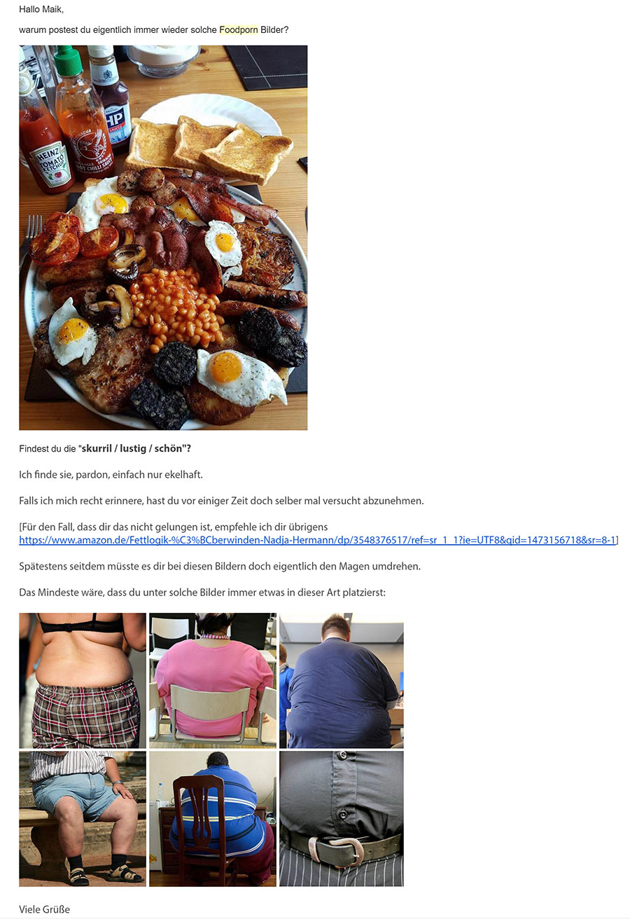 Die nachfolgenden Vergleiche zwischen Zigaretten und Foodporn erlasse ich euch mal. Hier sind wir schon arg auf dem Weg zur aktuellen Empörungsgesellschaft. Über alles wird gemeckert, sich aufgeregt und #Aufschrei vollzogen. Aber das ist dann noch einmal ein anderes Thema…