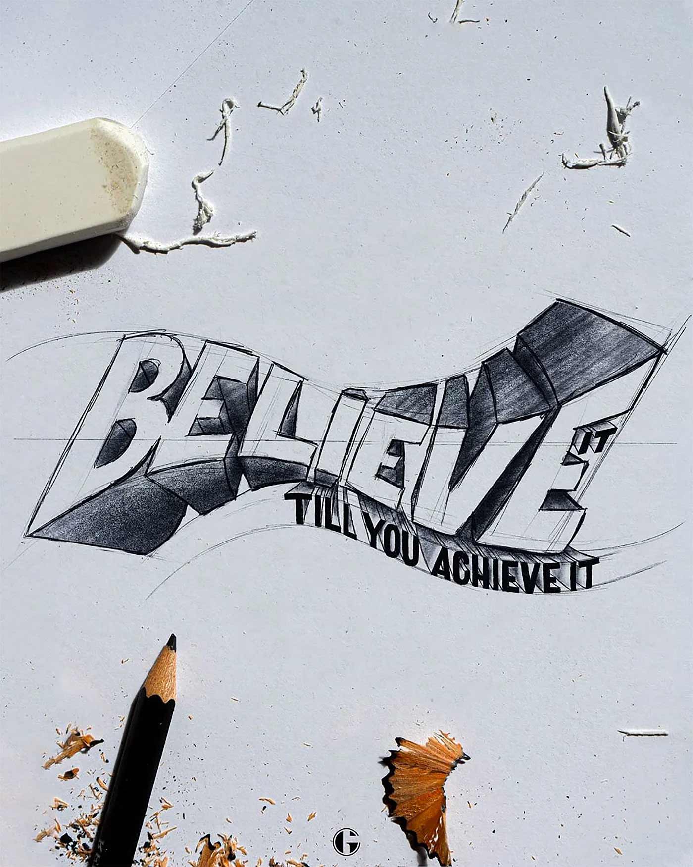 Weitere dieser gelungenen Typografie-Arbeiten gibt es auf Gabriele Conoscentis Instagram-Profil mit dem Handle @gcdirection zu bewundern. Unter anderem auch immer mal mit etwas Making-of-Einblick beim zweiten Swipe, wie bei diesen Bildern hier: