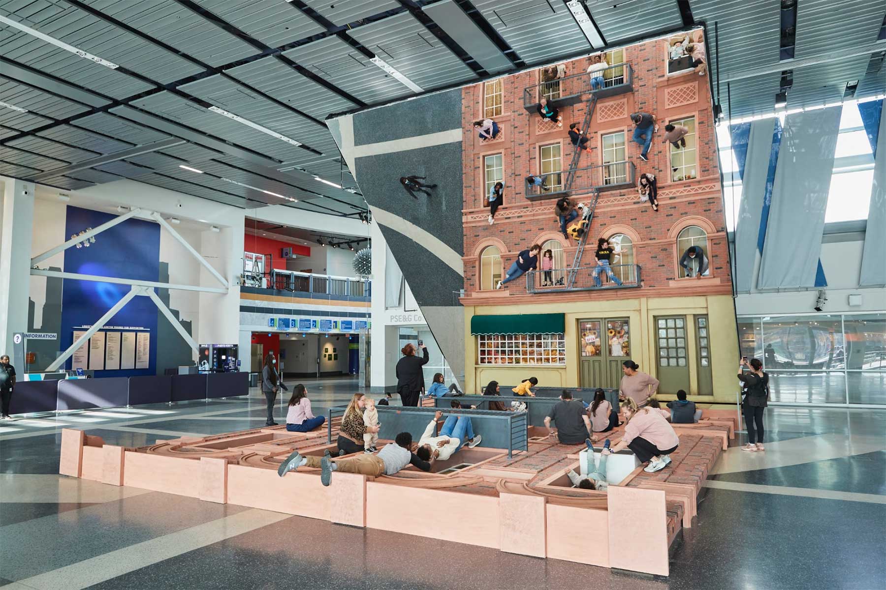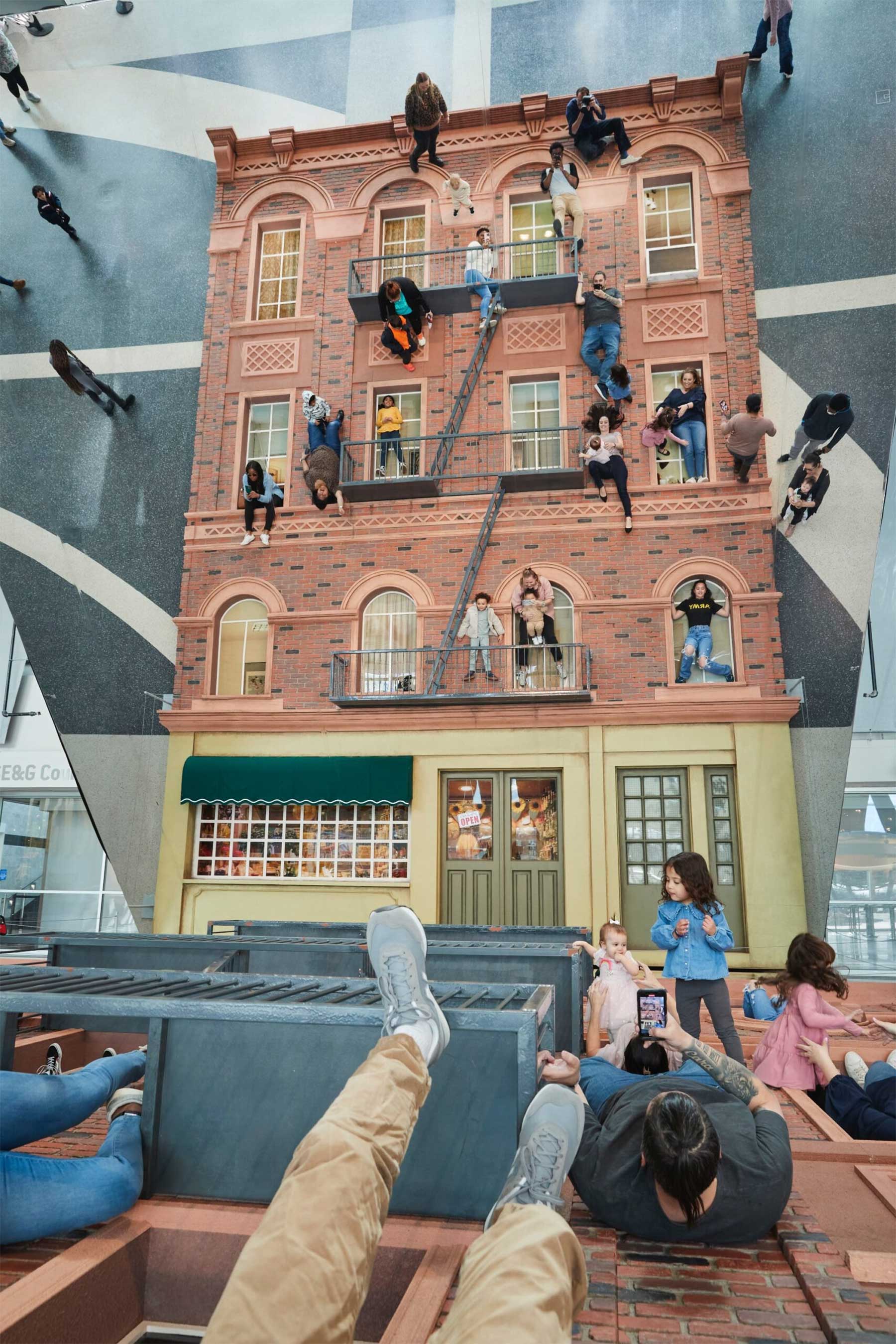 Im Zuge seiner „Bâtiment“-Reihe hat Künstler Leandro Erlich bereits 2013 Leute an eine Londoner Häuserwand gehängt. Aktuell steht “The Building” im Liberty Science Center in Jersey City. Das Besondere an der Installation: Die vermeintlich normale Fassade eines Wohnhauses aus New York City liegt auf dem Boden. Ein geneigter Riesenspiegel sorgt dafür, dass Personen tun können, als hingen sie an Balkongerüsten oder liefen senkrecht die Fassade hinauf. Das muss ziemlich genial wirken, wenn man live vor Ort ist! Bis 2. Oktober habt ihr die Chance, solltet ihr selbst zufällig in der Nähe sein.