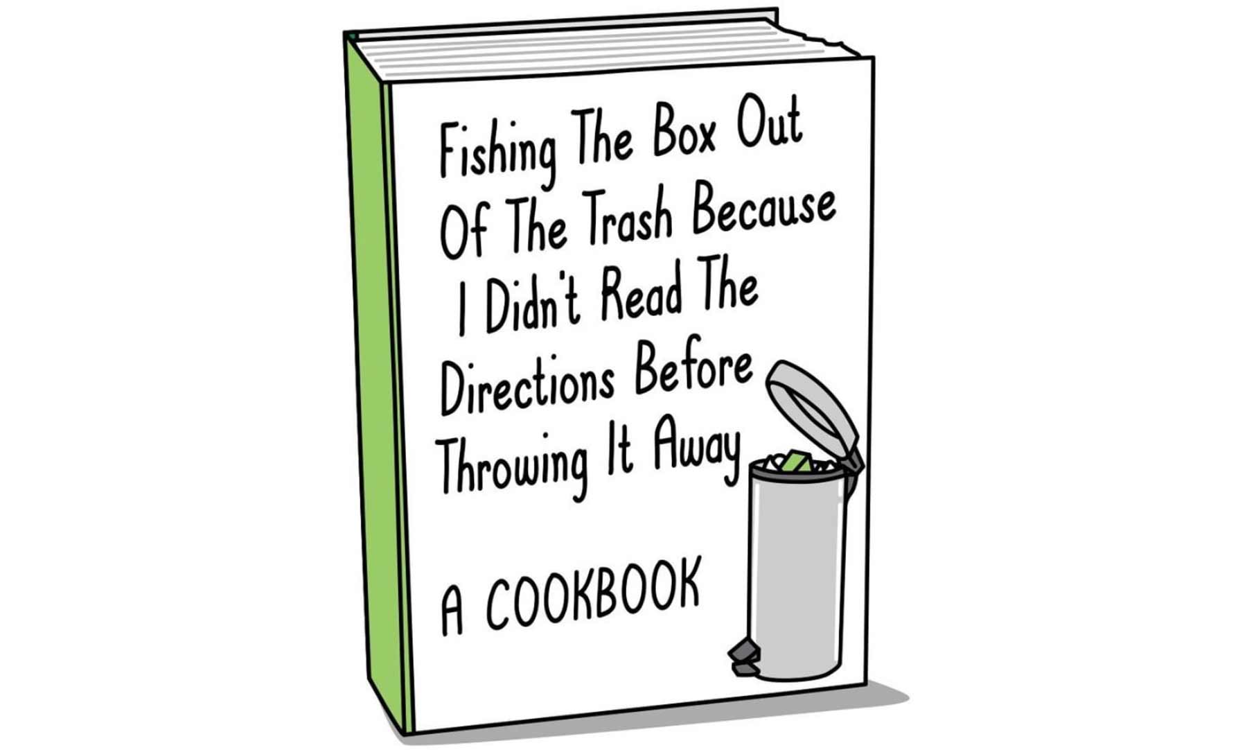 Ich bin super schlecht mit Namen. Vielleicht kennt ihr das ja auch, wenn sich euch neue Leute vorstellen und ihr noch währenddessen denkt „Erinner dich an den Namen!“ und schon ist er wieder verflogen. Wie hieß der/die noch mal? Puh, keine Ahnung. Hoffentlich sagt nochmal irgendwer den Namen… Aber keine Bange, dazu gibt es jetzt ein Buch! Okay, nicht wirklich, nur ein gezeichnetes, vermutlich leeres Buch mit dem Titel „The Complete Thesaurus of Name Placeholders I Use When They Introduced Themselves And I Wasn’t Listening“. Diese und weitere sehr bekannte kleinen Situationen aus dem Alltag fasst „Story Of My Fucking Life“ auf und lässt so nach und nach die skurrile Bibliothek der Peinlichkeiten und „Kenne ich…“-Momente entstehen. Klasse!