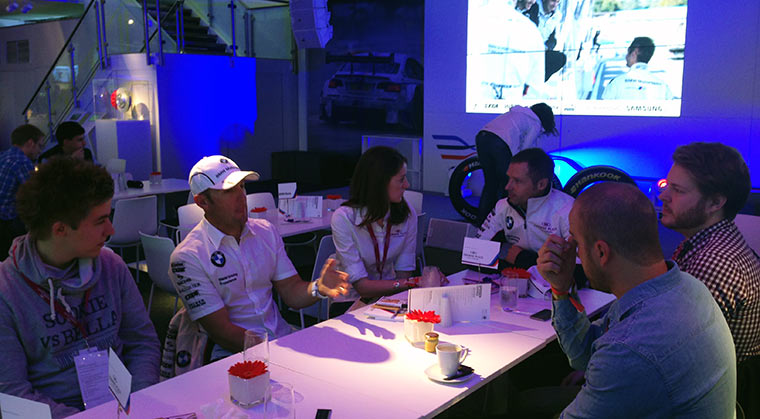 Am Samstagabend ging es nach Heidelberg, wo ich im Crowne Plaza übernachtet habe. Dort getroffen habe ich auch Nico von whudat und endlich auch mal Kim von Designlovr.net. Am Sonntagmorgen sind wir mit dem Shuttle zur Rennstrecke. Wettertechnisch haben wir den schlechtesten Tag des Jahres erwischt, aber sei’s drum. Nach einem Frühstück durften wir ein bisschen mit den BMW-Fahrern Andy Priaulx und Joey Hand quatschen, die uns interessante Einblicke in den Renntagablauf eines Rennfahrers gegeben haben.