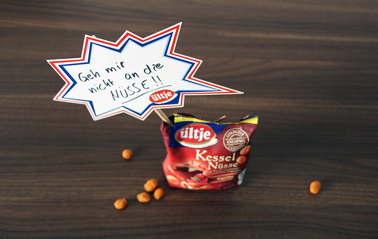 „Wir senden dir ein Paket mit leckeren ültje Kessel Nüssen und weiteren Spaß-Gadgets, die du anschließend individuell für deine Bewertung der Nüsse nutzen kannst.“