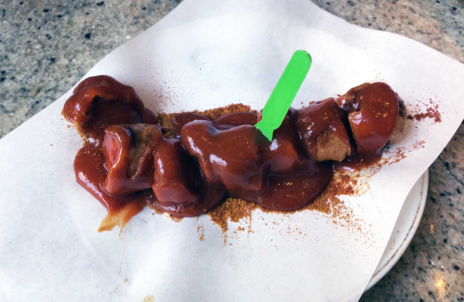 Weil meine Oma Anfang der Achtziger in der Nähe des Kudamms untergekommen war, galt es, Erinnerungen zu wecken. Ein Superschnellstreifzug durchs KaDeWe, ein langer Spaziergang entlang des kompletten Kudamms und eine Currywurst – Check! Abends ging es dann noch auf den „echten“ Prenzlauer Berg (unsere Wohnung ist nicht wirklich in der fancy In-Gegend), um lecker italienisch essen zu gehen (keine Experimente mehr…), ehe es auf einen Absacker an die Hotelbar ging. Dort haben wir dank Aquarium-Fernseher vom ulkigen Langnasen-Doktorfisch erfahren, ohne Wissen um dessen Existenz ich definitiv nicht mehr leben möchte! Wo ich von „Nasen“ schreibe: Den ersten Sonnenbrand des Jahres hätte ich dann auch erledigt. Yay.