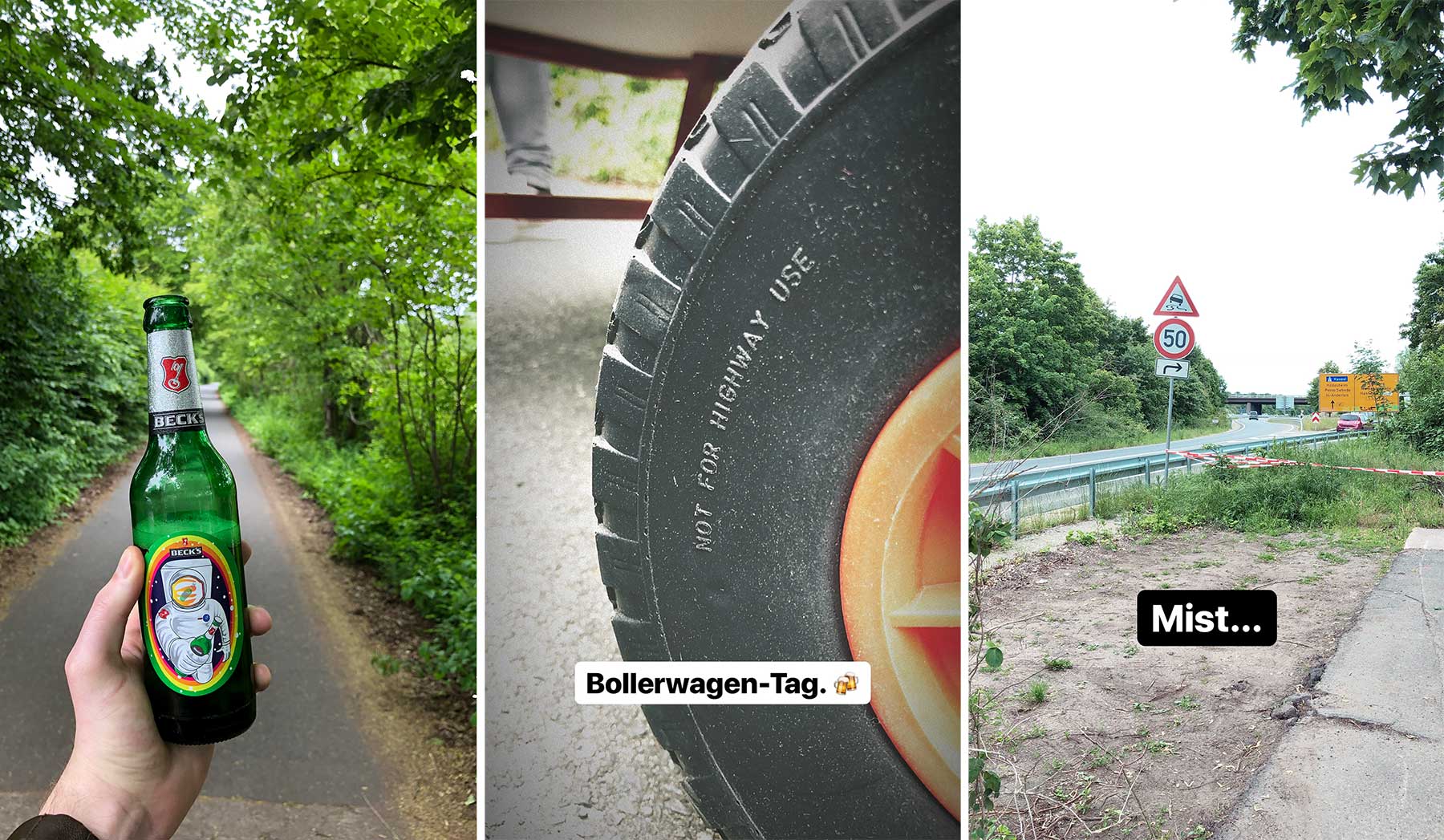 Nein, damit meine ich nicht, dass ich beim Frisenleger war, das ist eher das quartalsweise Zurückschneiden der Zeit. Damit meine ich Donnerstag. „Christi Vatertag“. Und vor allem dieses Jahr auch der Geburtstag von LangweileDich.net-Mitbegründer Piotr. Also ging es nach Hannover zur feierlichen Bollerwagentour. Was nach totalem Besäufnis klingt, war doch eher unserem fortschreitenden Alter angemessen bedächtig, hat aber aufgrund eher suboptimaler Essensgrundlage dennoch zu heiteren Momenten geführt. Zum Beispiel, als wir in der Eilenriede irgendwo falsch abgebogen waren, um uns am Rande eines Schrebergartengebietes am Kopfe einer Sackgasse wiedergefunden haben, deren einziger Ausweg die Autobahn zu sein schien. Leider hatten wir die falschen Schlappen drauf…