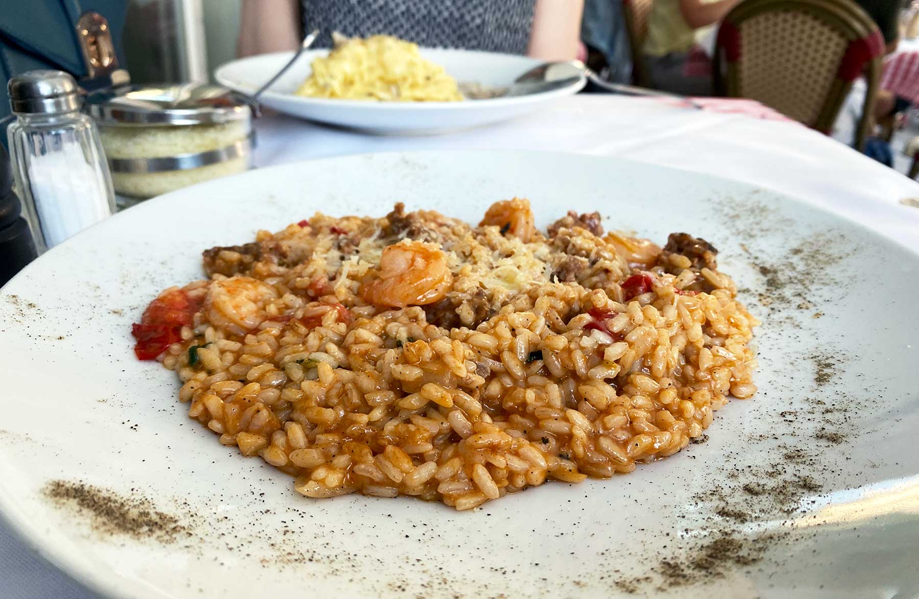 Donnerstag stand der zehnte Jahrestag mit dem Lieblingsmädchen und zur Feier des Tages unser erster Restaurantbesuch seit Monaten an. IN ein Restaurant sind wir zwar noch nicht gegangen, aber davor gab es lecker Risotto mit Garnelen bzw. Pasta mit aus dem Parmesanlaub geflämmten Käse und Trüffel für uns. Super-yummy! Das anfangs etwas seltsame Bauchgefühl war schnell verflogen, da die Abstände der Tische anständig gewählt waren.