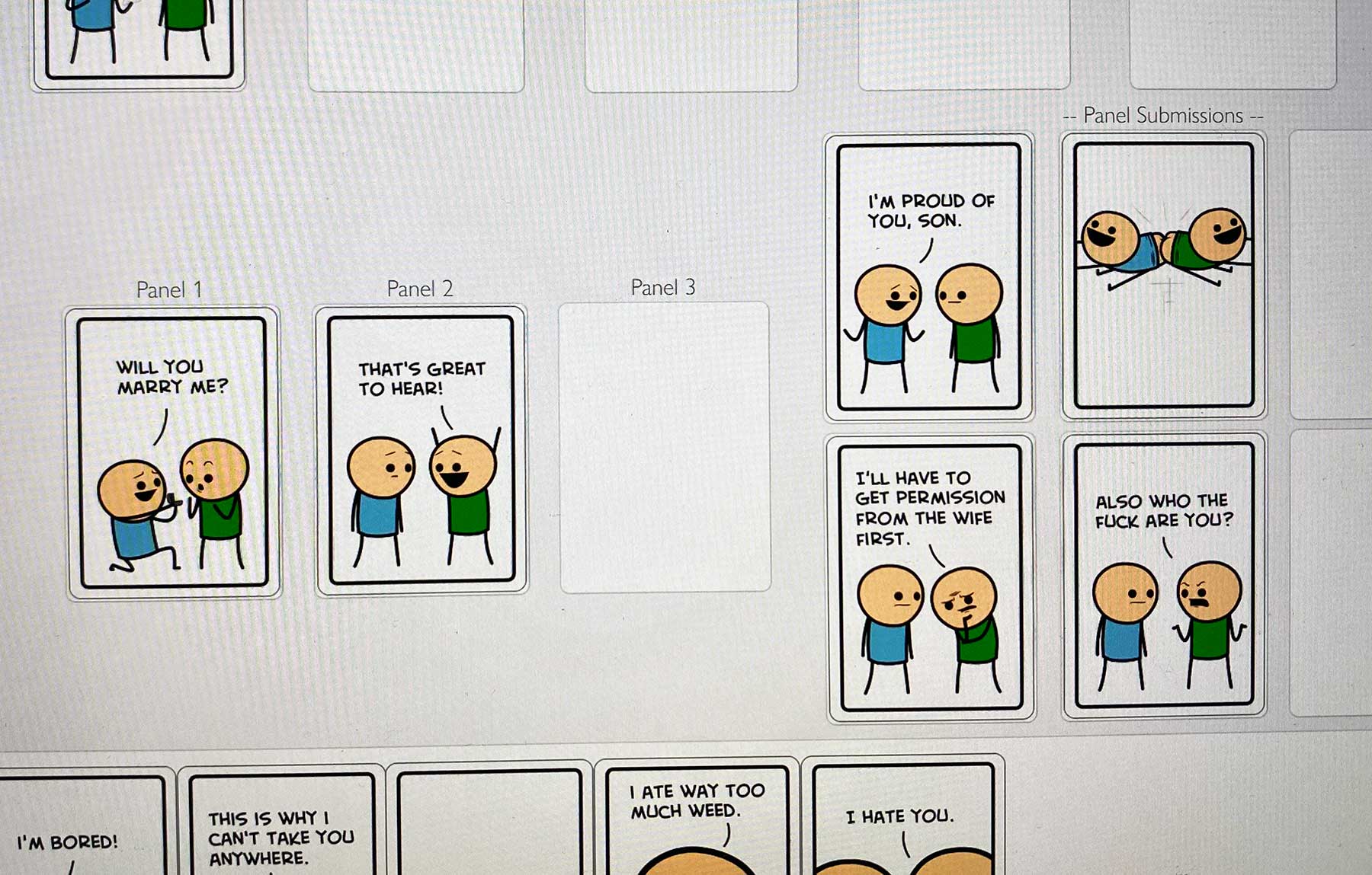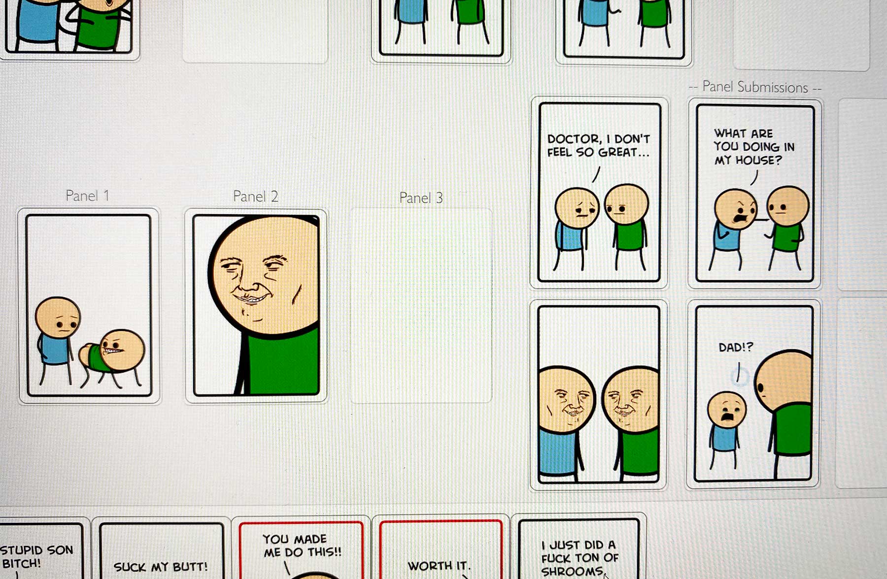 Samstag gab es dann noch einen Spieleabend mit „Carcassonne“, „6 nimmt“ und „Joking Hazard“ – hier mal zwei Highlights aus den sehr spaßigen Runden: